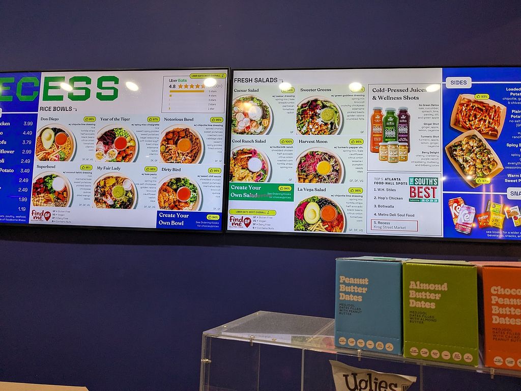 i love recess. i frequently dine hear friendly staff delicious bowls & salads that they change often.