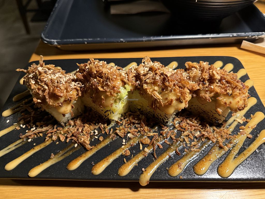 Amazing vegan Ramen. Beautifully presented with a smoky hood for extra flavor. I ordered the Red Hot Ramen, which is only medium spicy for those who are worried it would be too hot. And ordered the Spicy Avocado Roll. I much prefer the cold sushi rice they use as opposed to places that serve similar crispy rice avocado dishes.