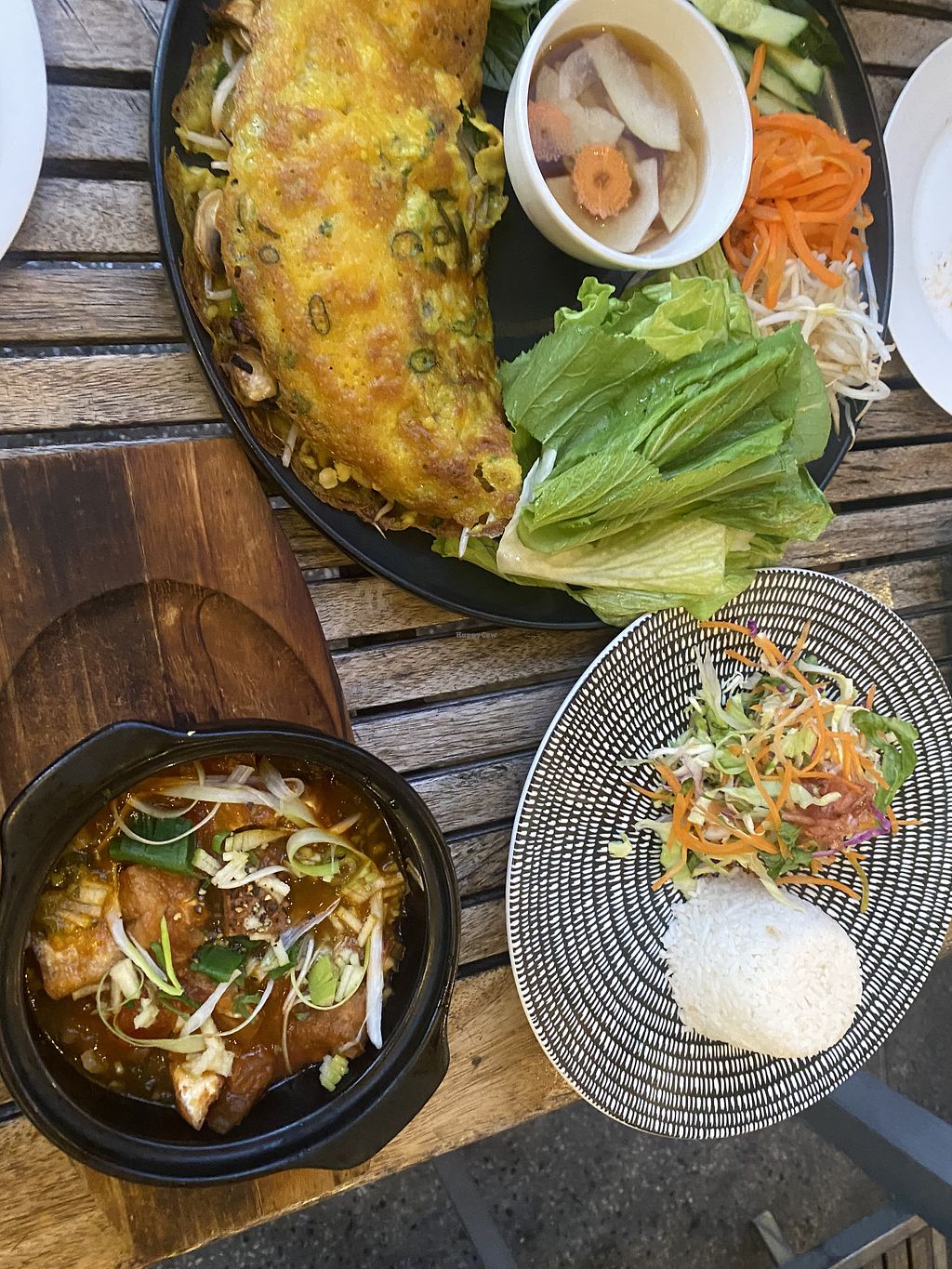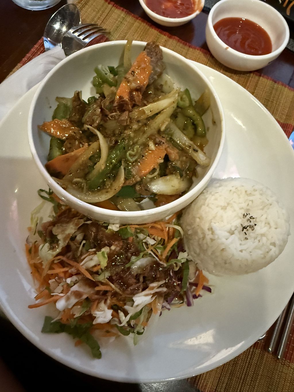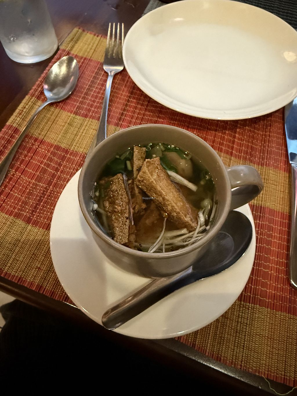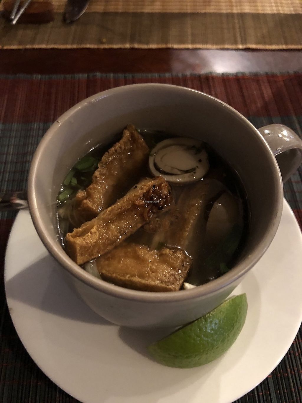 The tofu vermicelli bowl was really delicious- the lemongrass was a nice flavor addition and it had plenty of vegetables over the noodles. My husband had Tom yum soup and loved it. The restaurant is decorated in a fun way and we enjoyed live music while we ate. Staff were very knowledgeable and when I asked a question, they were sure to bring me a specifically vegan menu to make it easier for me to choose something to eat. They have a lot of great options