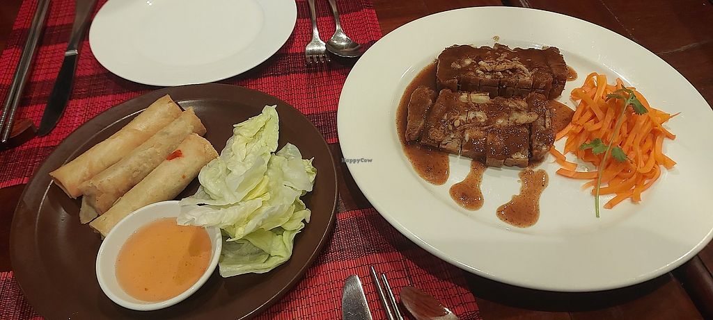 Entrees: The spring rolls were okay, the vegan crispy pork belly was like deep fried bread.