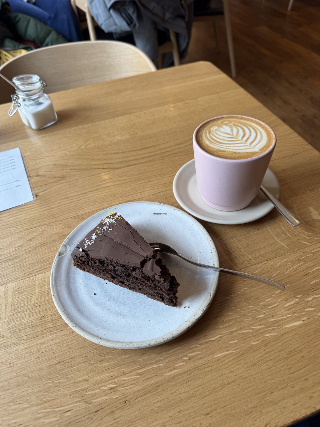 I really enjoyed a beetroot chocolate cake here. Chai Latte with oat milk was great too. Friendly staff, it was really busy though.
