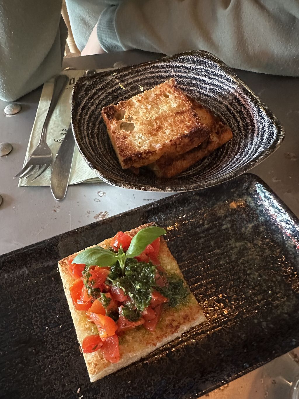 I dunno—I really enjoyed my food here! Maybe I was just really hungry, but to me the vegan main I ordered (soya and lentil patties with garlic oil potatoes and veggies) was really tasty—to be honest, I’ll be dreaming about those potatoes. The bruschetta, seasonal for summer, was also lovely. I noticed a tofu and hummus starter and pasta dish that was also vegan, as well as a vegan option for their apple crumble with vanilla ice cream. The menu isn’t huge anyway and both the salad dressings at the free salad bar were vegan, too. The prices were standard for Finland, imo. I would definitely go back!