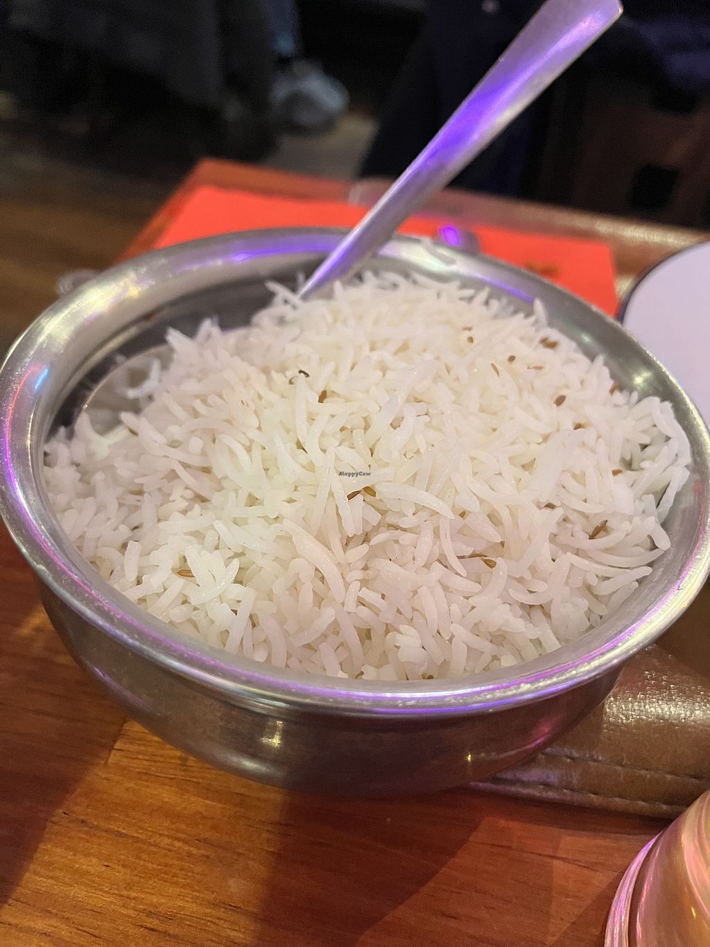 Really tasty Indian food for a fair price! Besides the vegan menu with lots of options, they also have some vegan sides in their regular menu such as vegan naan.