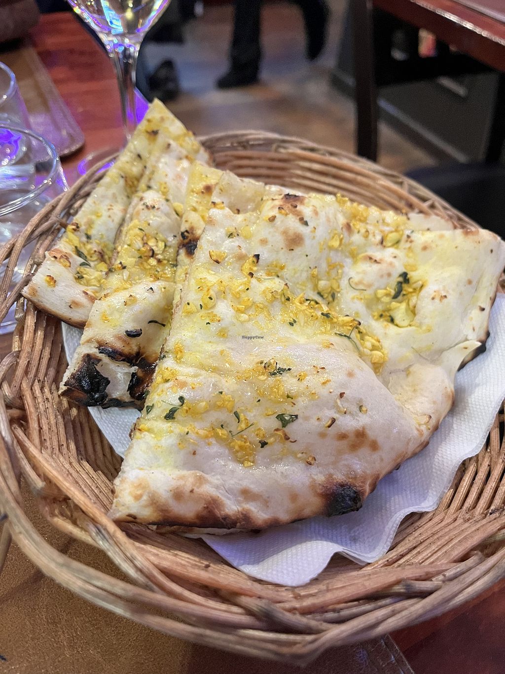 Het restaurant heeft een aantal vegan opties. Bijzonder is dat ze ook vegan naan (inclusief garlic naan) bieden, evenals vegan mango lassi. Mijn vriend en ik bestelden tofu masala met garlic naan en tandoori roti. Erg geslaagd! Ik was vooral groot fan van de roti