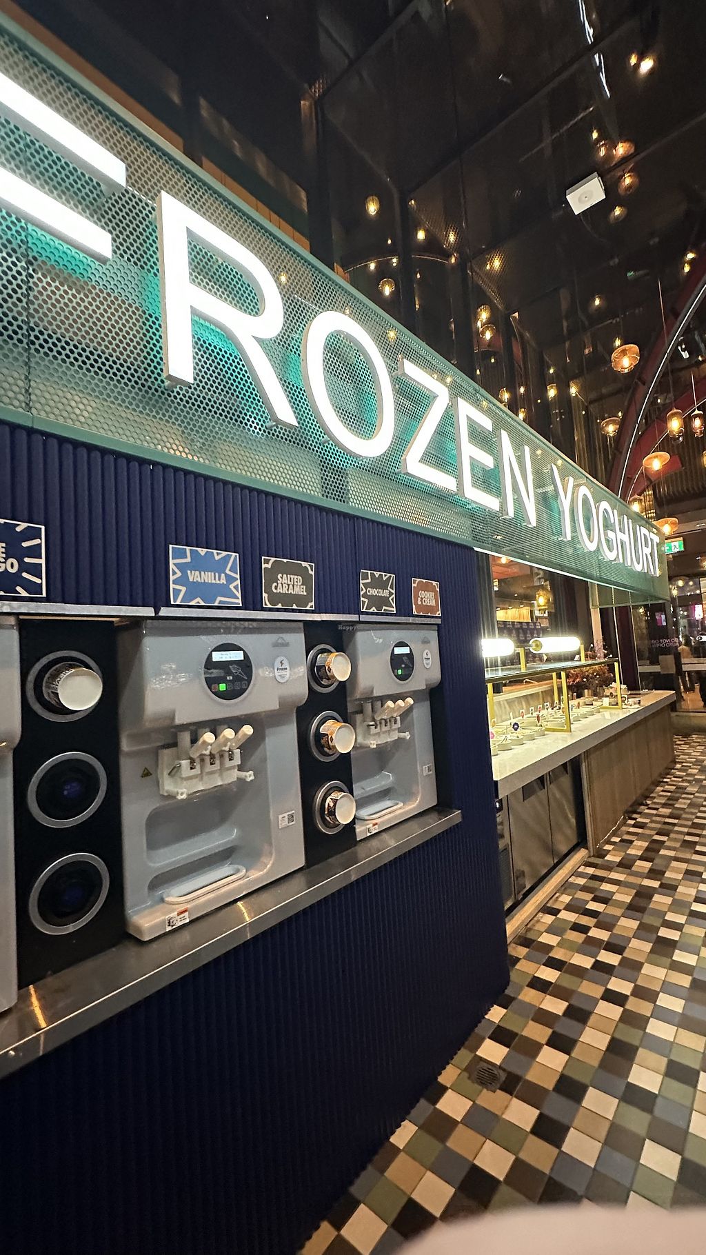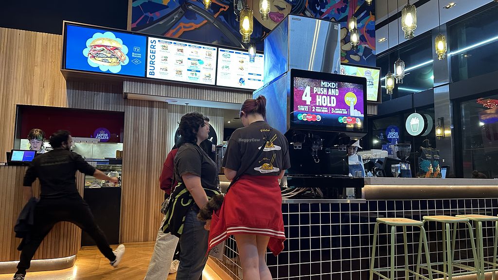 Serves meat, vegan options available. sell burgers, fries, salads and have a frozen yoghurt bar where you can make your own. , frozen yoghurt option (coconut dairy free) with toppings option such as peanut butter, biscoff sauce and biscoff crumble, almonds, fruits, etc. vegan burger, fries with ketchup Open Mon-Fri 8:00am-10:00pm, Sat-Sun 8:00am-11:00pm.
