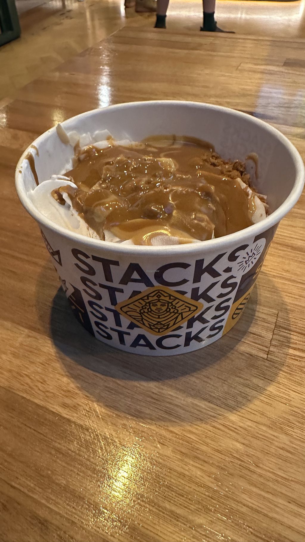 Absolutely delicious gorgeous creamy coconut dairy free yoghurt! Best frozen yoghurt I ever had. You can eat it without any toppings is that good! I added the biscoff and peanut butter as sauces, as well as biscoff crumble, some fruits, almonds and coconut flakes. Delicious! For a big portion it came to around 8 AUD