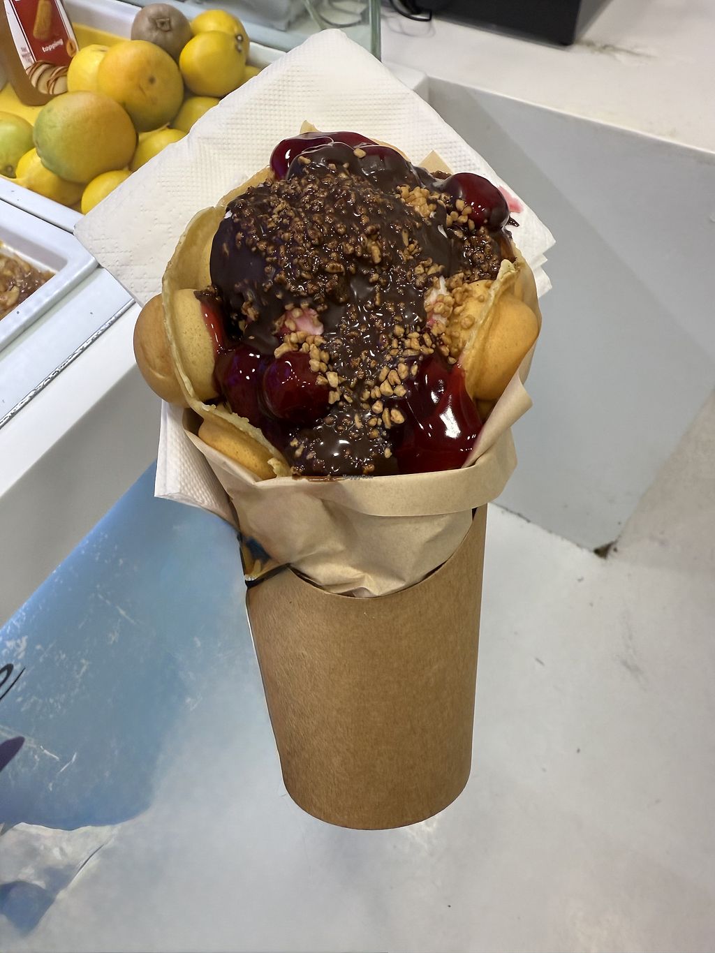 The bubble waffle with dark chocolate and nuts was soo delivious!! ❤️