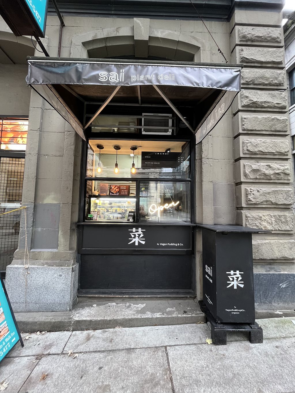 Window counter in downtown Vancouver since 2015. Sells vegan cakes, pudding, and tea. Added Sai Plant Deli in 2025, the one and only oyaki store outside of Japan. Open Mon-Sat 11:00am-6:00pm.