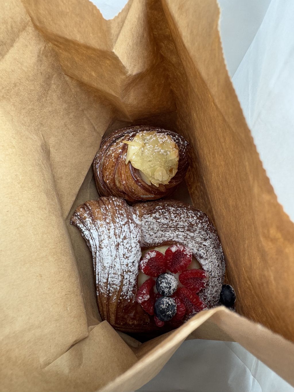 Croissant with a really delicious hazelnut paste inside, topped with c…