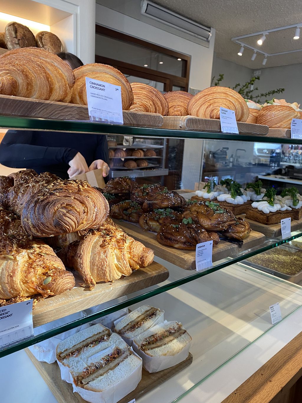 Cute little cafe in a quieter area of Amsterdam. All plant-based so you have all the pastries/sandwiches to choose from. The staff are friendly and nice and the food is tasty. Loved the cinnamon croissant and the Hoisin bun!