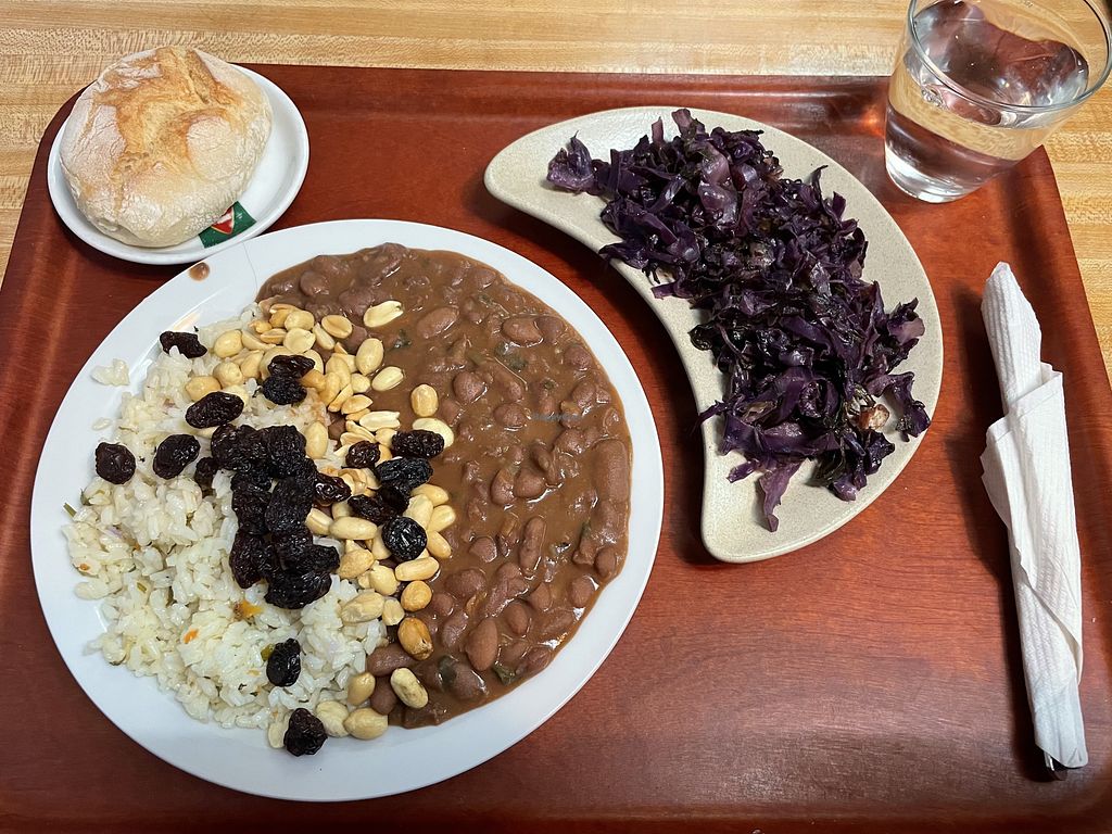 Read moreA veggie and tasty soup with a regular white bread (with mix of cereals). Then you can choose what and quantity you can from the available food. I had brow rice (white availale) and a seitan + veggies mix in peanut sauce, some cabbage rolls stuffed with chickpeas and spinach (this were really good).