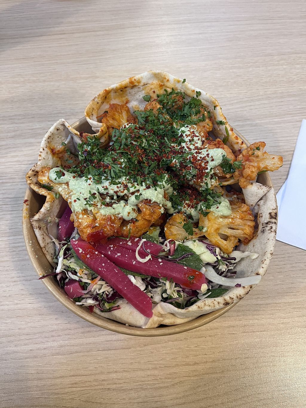 The loaded fries were super crispy and saucy which I loved. We also had the cauliflower wrap. The wrap was just boiled, no seasoned cauliflower which I though was odd and some sauce and salad veg. The veg tasted of vinegar and the sauce was such a tiny amount you could barely taste it. Overall the wrap had very little taste. Some flavour for the cauliflower or fried, just anything to give flavour would be beneficial. I'd go back for the fries and maybe to try something else but a bit put off by how tasteless it was