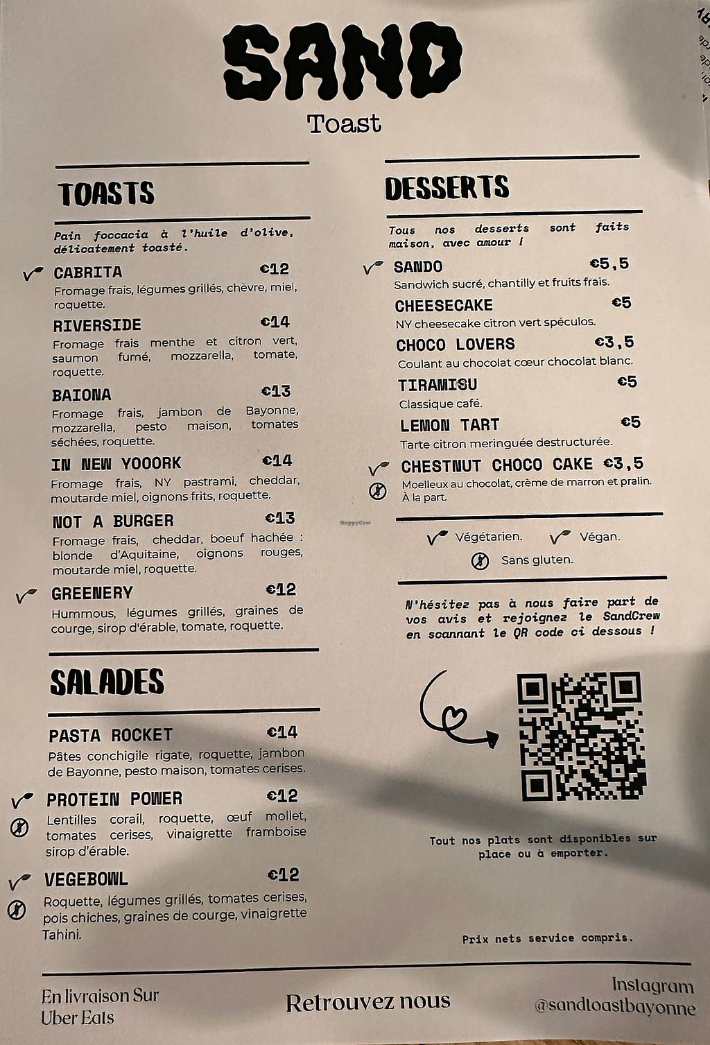 Serves meat, vegan options available. Toastie bar also serving salads and desserts. Vegan selection includes a hummus toastie, chickpea salad bowl and two vegan desserts. Companion animal friendly. Open Tue-Sun 10:00-21:30. Closed Tue.