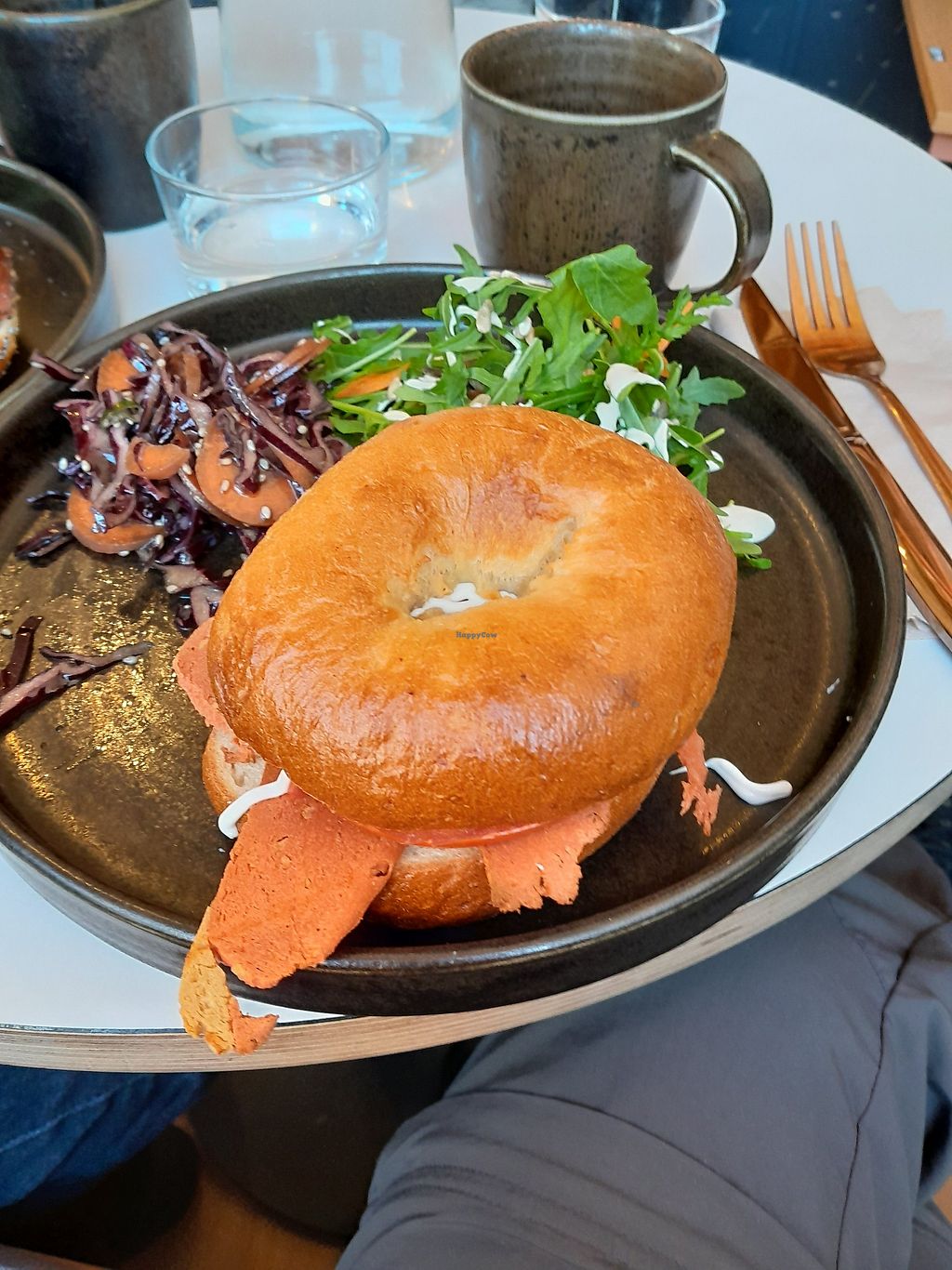 Beautiful vegan options, no meat alternatives but the veg is prepared so thoughtfully it wasn’t needed! Had the vegan special bagel that was full of fresh flavours and a bakewell cinnamon bun - absolutely heavenly! Friendly staff and a gorgeous setting for a catch up with friends