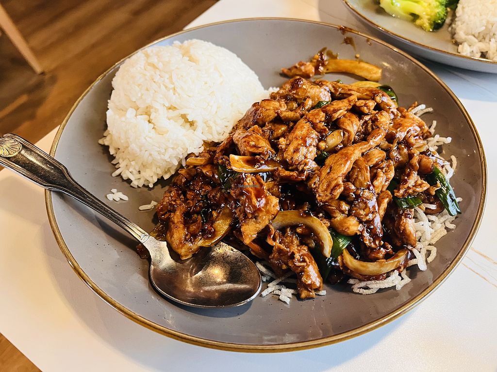 We had the vegetable trio, spicy dry fried tofu (which wasn't spicy but had great flavor), and the mongolian soy curls. We enjoyed everything. We ordered way too much rice, though - a "large rice" is really very large! The vegetable trio was fresh and had nice crunch and garlic flavor. The tofu was surprisingly delicious and flavorful. The soy curls were also very good, although the flavor was different from mongolian dishes I've had in the past. Maybe just a different style. The tofu and mongolian soy curl dishes didn't include much in the way of veggies, so we were glad we had also ordered the vegetable trio to help balance things out. We ordered takeout toward the end of the night, and they had our food ready fast and were very friendly and kind. I'm looking forward to trying more of their menu.