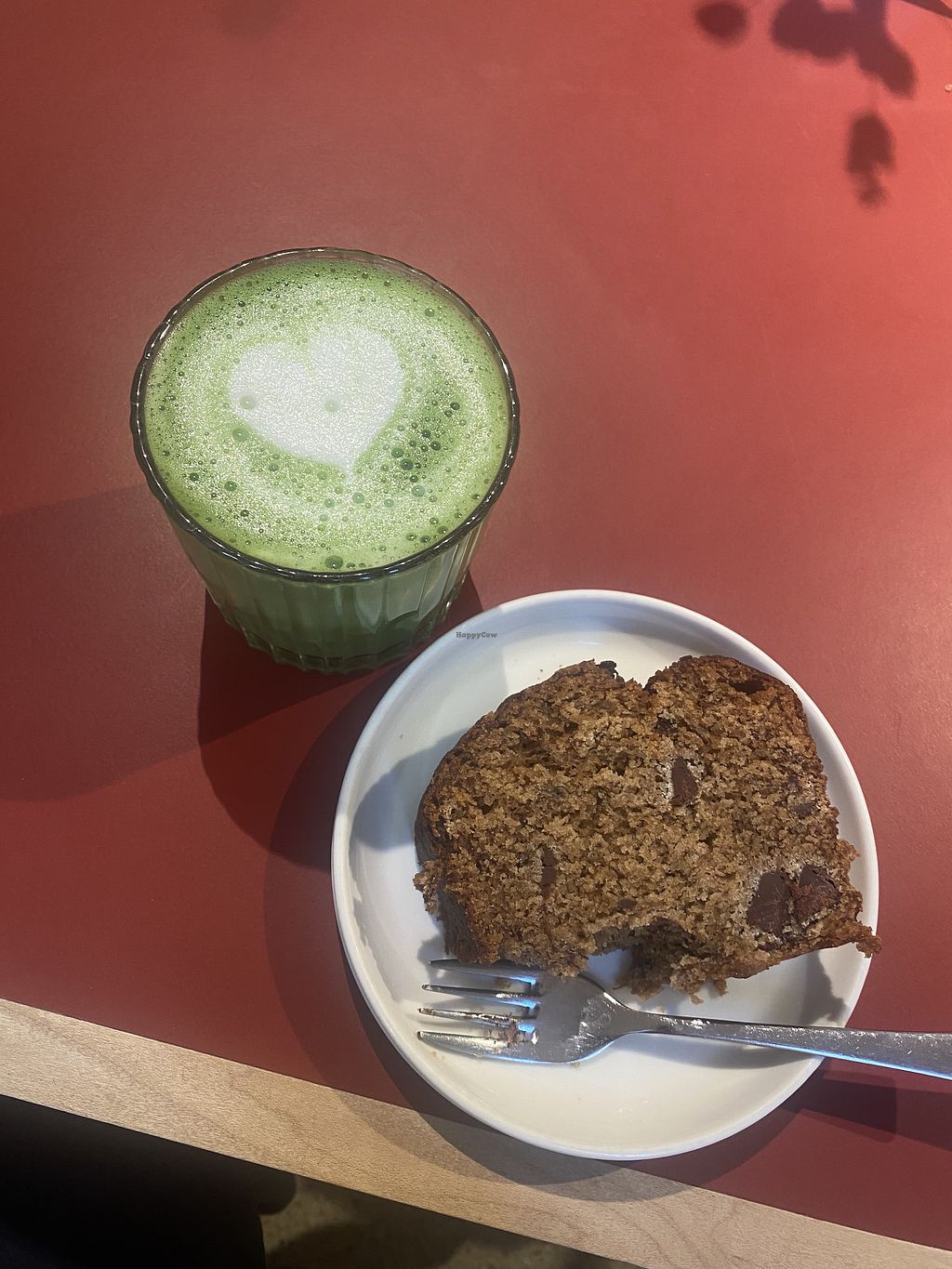 Read moreThe café blends in perfectly, inviting you to stay longer, watch others browse, or dive into a book yourself. I had a slice of banana bread with chocolate chunks - really delicious! It’s often too sweet for my taste, but this one was perfectly balanced. The chocolate pieces were quite large, but since they were dark and slightly bitter, it worked beautifully. I paired it with a matcha latte, which was also really good.