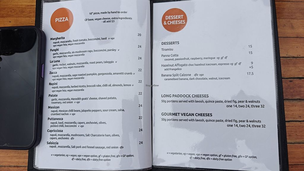 Vegan Pizza with the option to make nearly all pizzas vegan. Vegan cheese board with cheese from The Vegan Dairy.