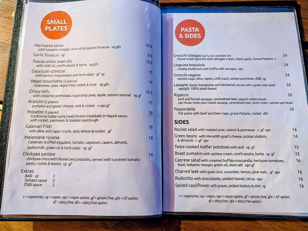 Great range of vegan options across all categories! Very impressed, especially for a country town. All dishes were amazing, the ravioli (a special) and chickpea panisse were the highlights. I'm looking forward to going back and trying more! Definitely a highlight of the region.