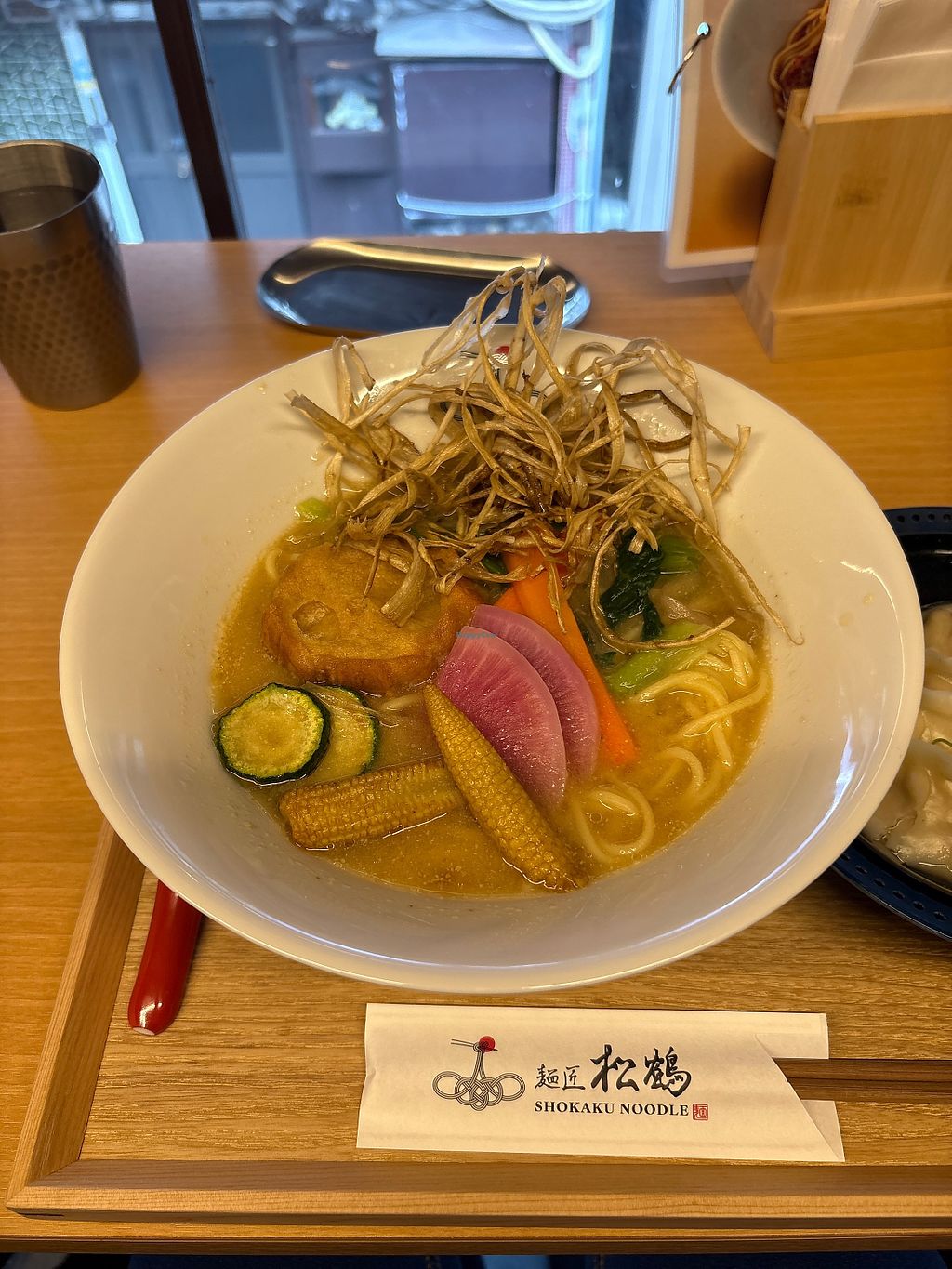 Good vegan options when eating out with non vegans. I’d recommend the miso ramen! The karaage was ok but I’ve had much better elsewhere in Japan
