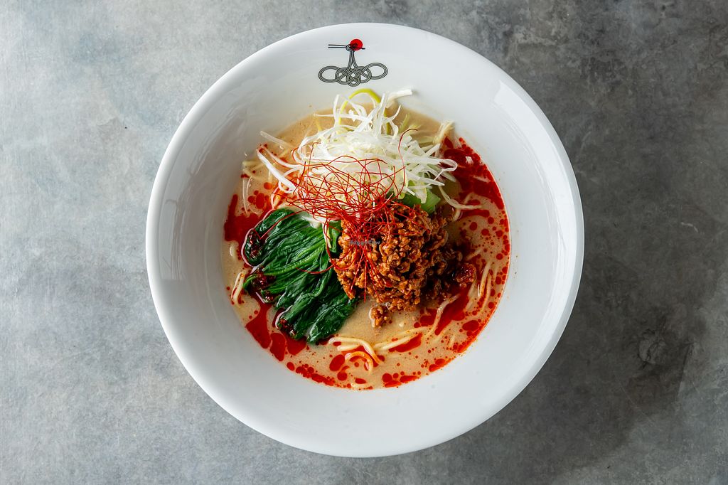 Serves meat, vegan options available. Ramen shop offering a variety of dedicated vegan options like Shoyu, Miso, Spicy Miso, and Dang Dang Men. Other plant-based items include vegan soup gyoza, plant-based fried chicken, and vegan ice cream. Open Mon-Sun 12:00pm-10:00pm.