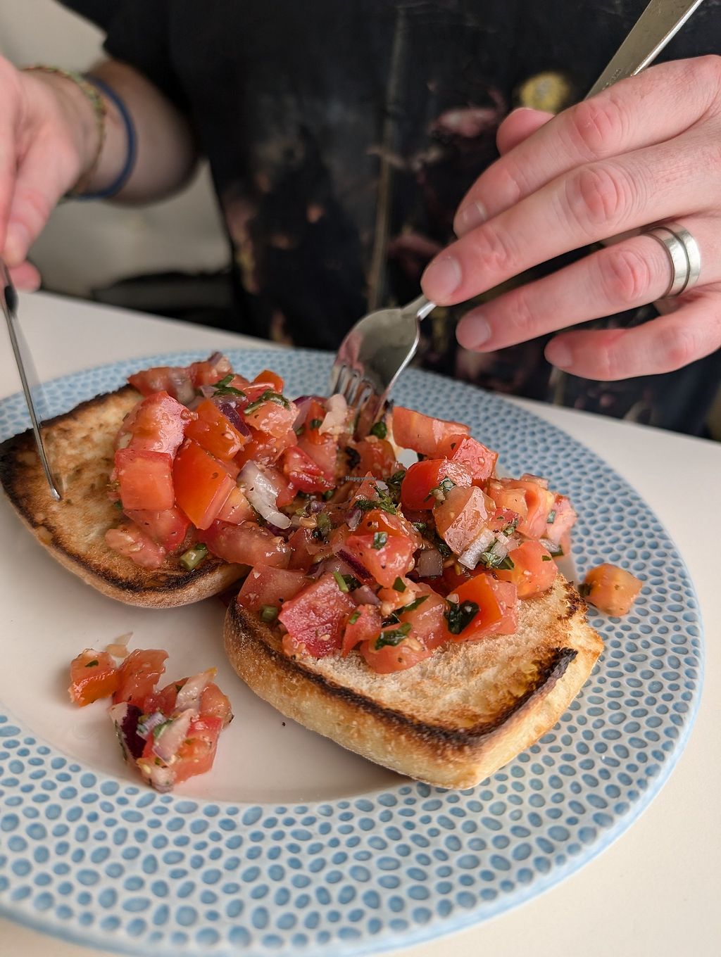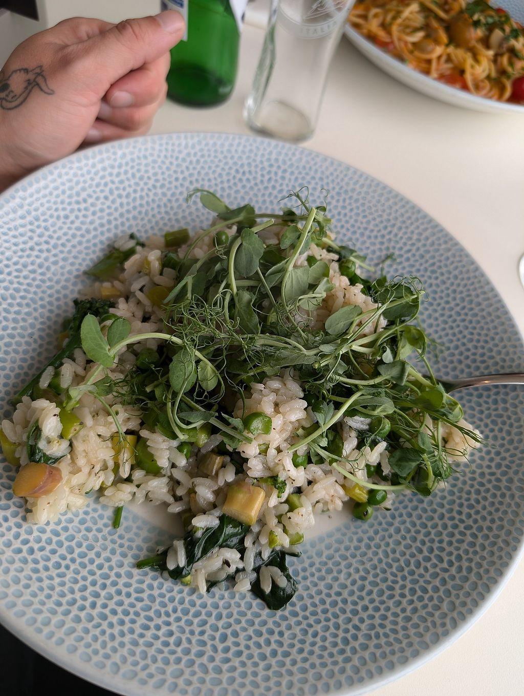 Chose this place as it’s nice to go somewhere that isn’t a chain and it was good! About 6 vegan starter options, a pasta dish, risotto and pizza options. I went for the risotto and think it would have been better with some vegan Parmesan but this wasn’t available. Generous portion sizes though! Had bruschetta and olives to start and they were delicious! Full and satisfied at the end 😊