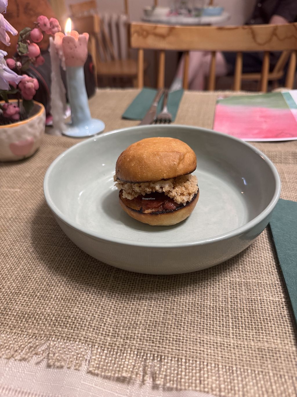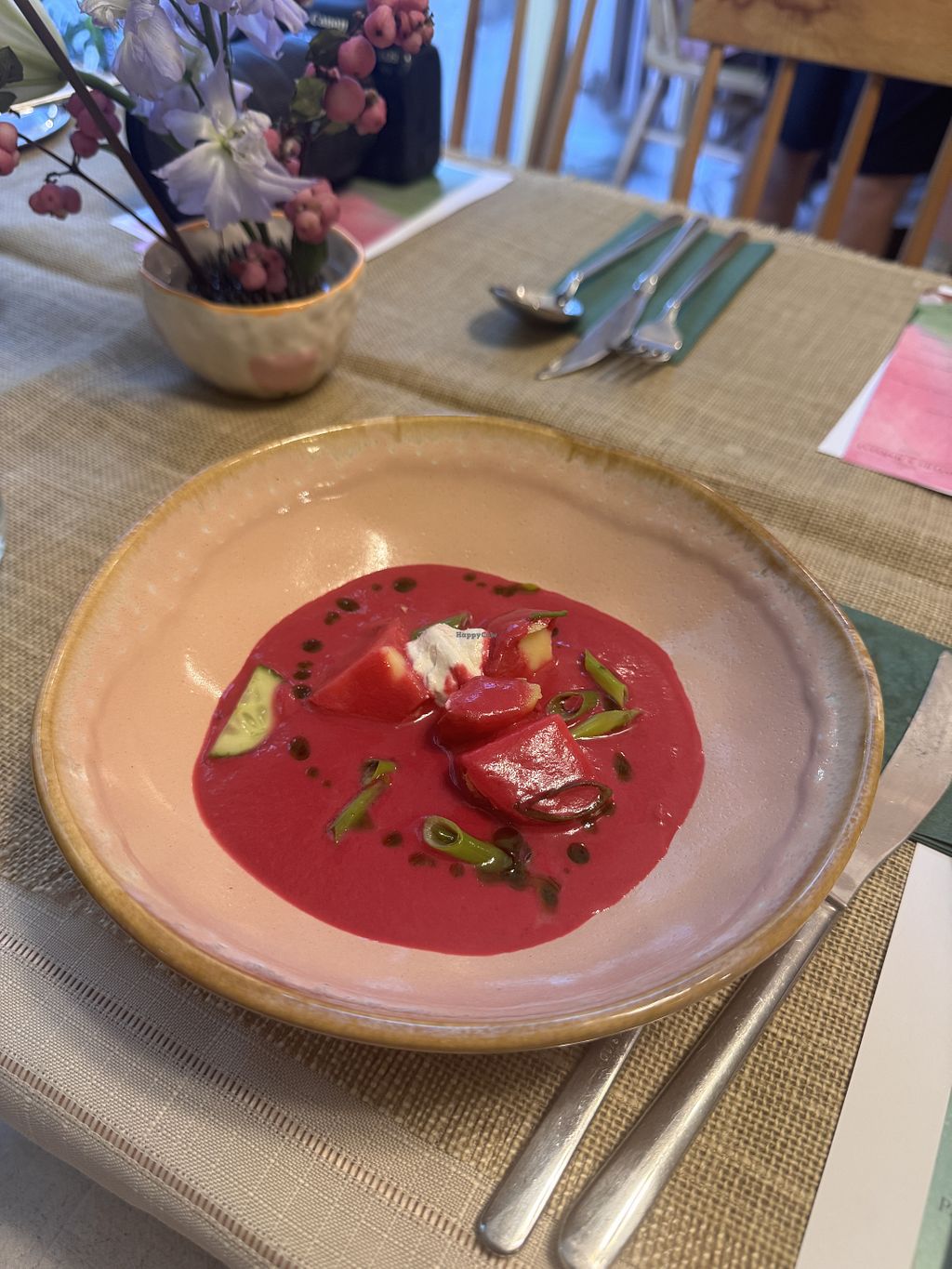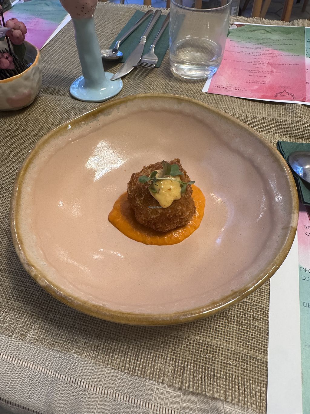 Not only is the interior gorgeous and the ceramics super pretty, staff was very friendly and welcoming. Prices seem a bit expensive (vegan ramen in opposite restaurant costs 300 TL) but the strawberry cake was sooooooo nice, very light vegan cream, and my chocolate sauce on my profiterols was really good as well. The dough was a bit tough and not as airy as I'd liked it to be, but still very recommended place.