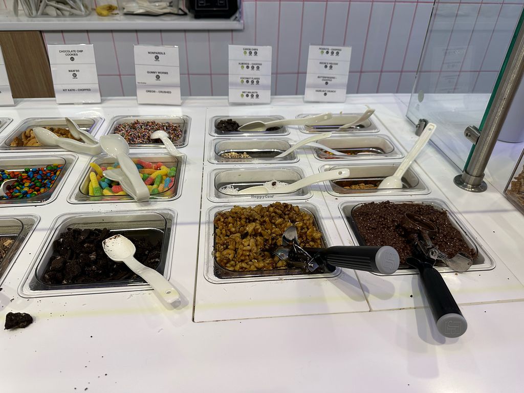 This 16 Handles location recently opened in Cobble Hill, and it's been packed each time I walked by! I appreciated that they offer a rotating list of a couple vegan options every day. When I went, I got to try Oat Milk Iced Latte and Oat Milk Vanilla flavors. Both were good, but I especially liked the Oat Milk Iced Latte flavor which tasted like mocha/coffee. I added vegan cookie dough and mango bursting bubbles as toppings. Reasonably priced for a "make your own" type of frozen yogurt place. All labels for both frozen yogurt flavors and toppings were clearly marked in terms of being vegan and other food allergies.
