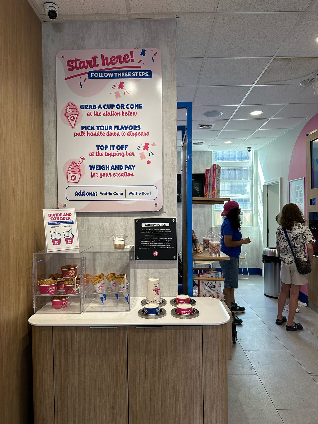 East Coast based chain of self-serve frozen yogurt shops. Offers a couple of vegan flavors each day, using oat milk base and coconut base. Choice of toppings includes diced fresh fruits and more. Online ordering clearly labels vegan choices. Open Mon-Thu 12:00pm-10:00pm, Fri-Sat 12:00pm-11:00pm, Sun 12:00pm-10:00pm.