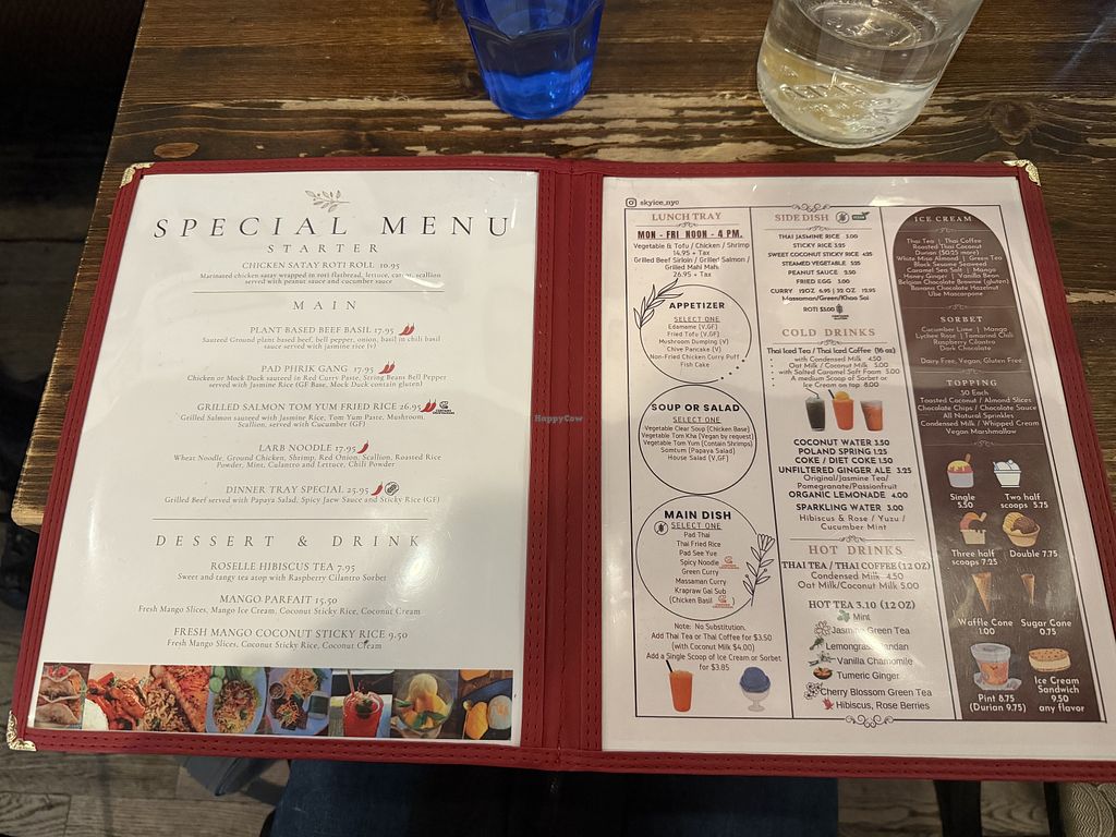SkyIce is a neighborhood gem, offering a range of classic Thai dishes. While they do offer meat and seafood, I especially appreciate that they have two vegan protein options - tofu and mock duck. Many dishes can also be made gluten free upon request. They have excellent homemade desserts with Thai-influenced flavors, such as cucumber lime and lychee rose sorbets. The staff are friendly, and, with space for ~22 diners, the tables fill up quickly at meal times.