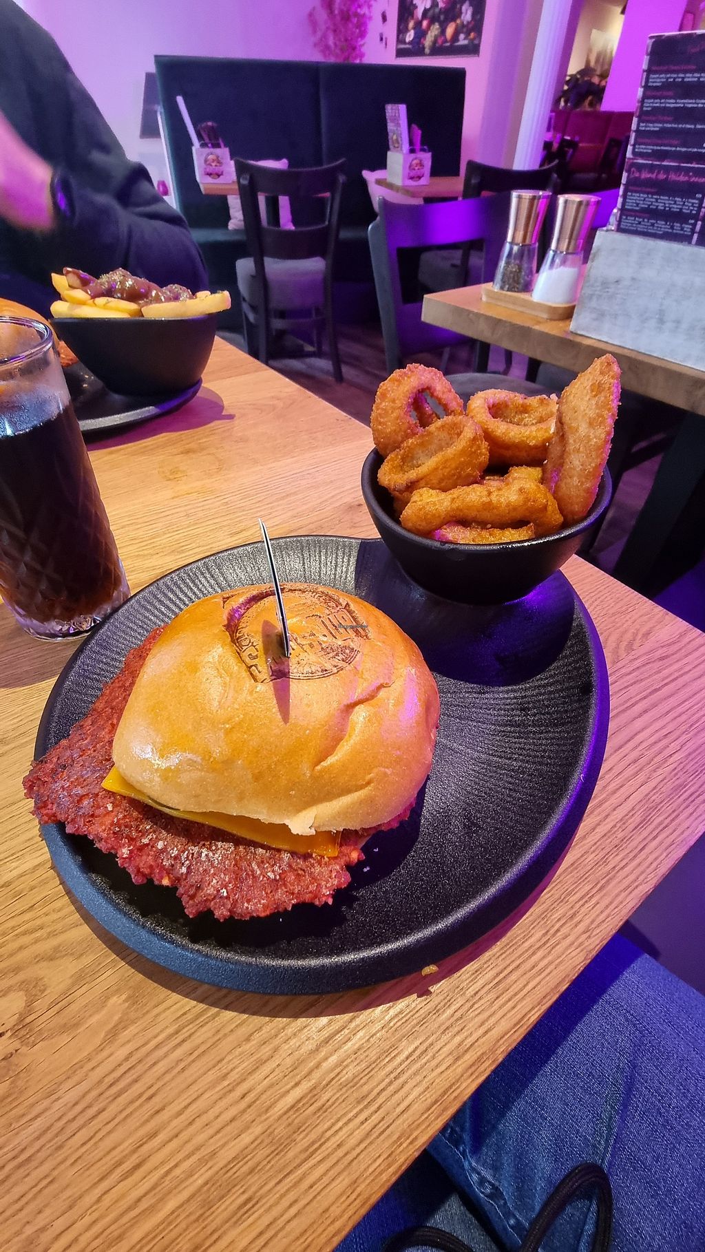 Unsere ersten Burger mit Smash-Zubereitung und sie haben uns voll überzeugt. Kross angebraten mit einer eigenen Rezeptur aus Erbsenprotein. Die Haptik ist toll und der Geschmack sehr kräftig. Sehr gastfreundlicher, engagierter Inhaber, bei dem man die Begeisterung für Qualität spürt.