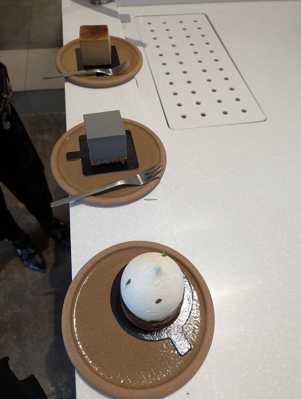 The cheesecakes are not only beautiful visually but also really tasty! We tried the black sesame cheesecake and the chocolate tamari tiramisu. The tastes were original and the cakes really good. It was a great surprise!