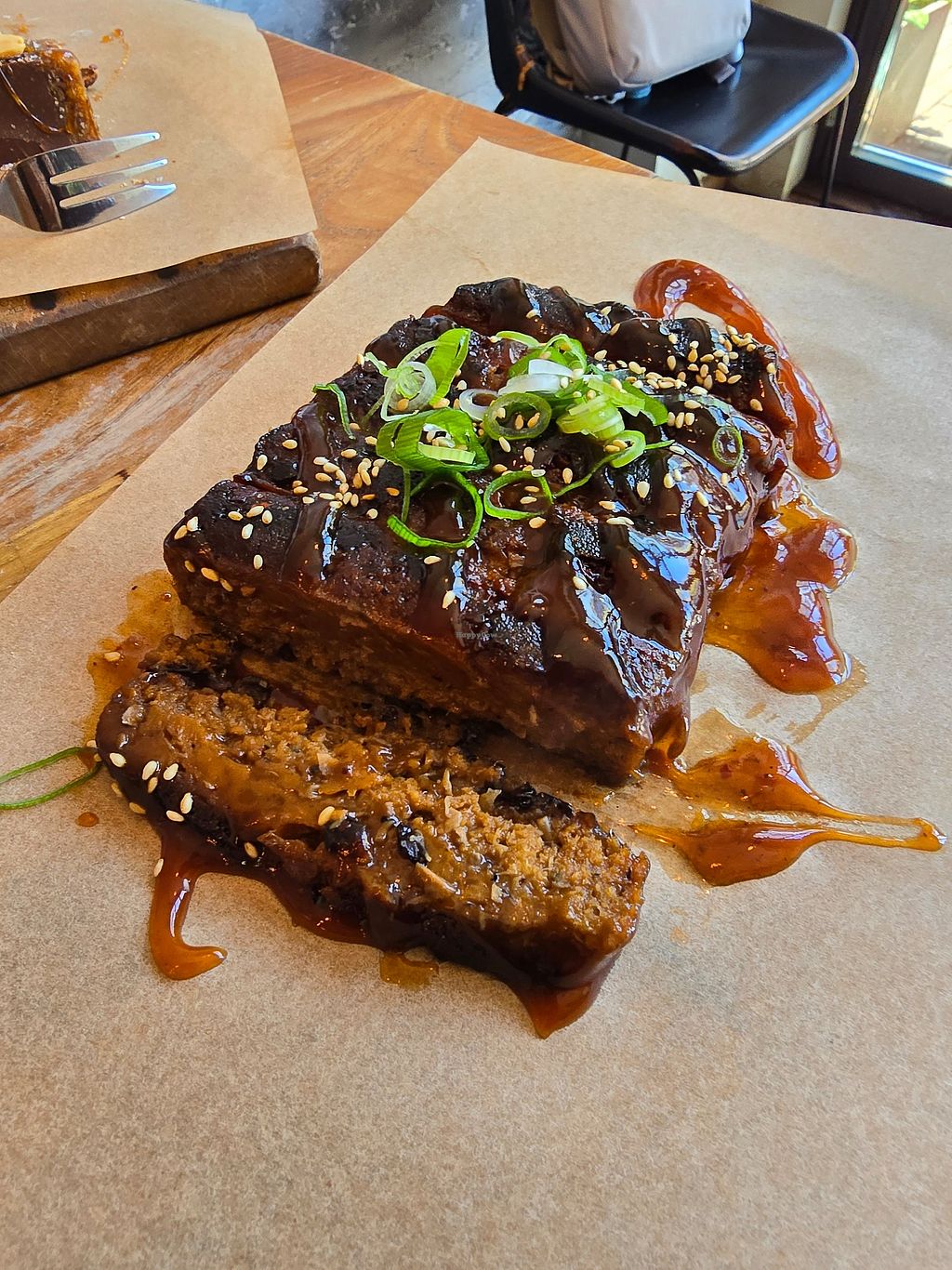 We had the udon satay noodles, and the kimchi-tempeh burger. It was all very tasty 💚