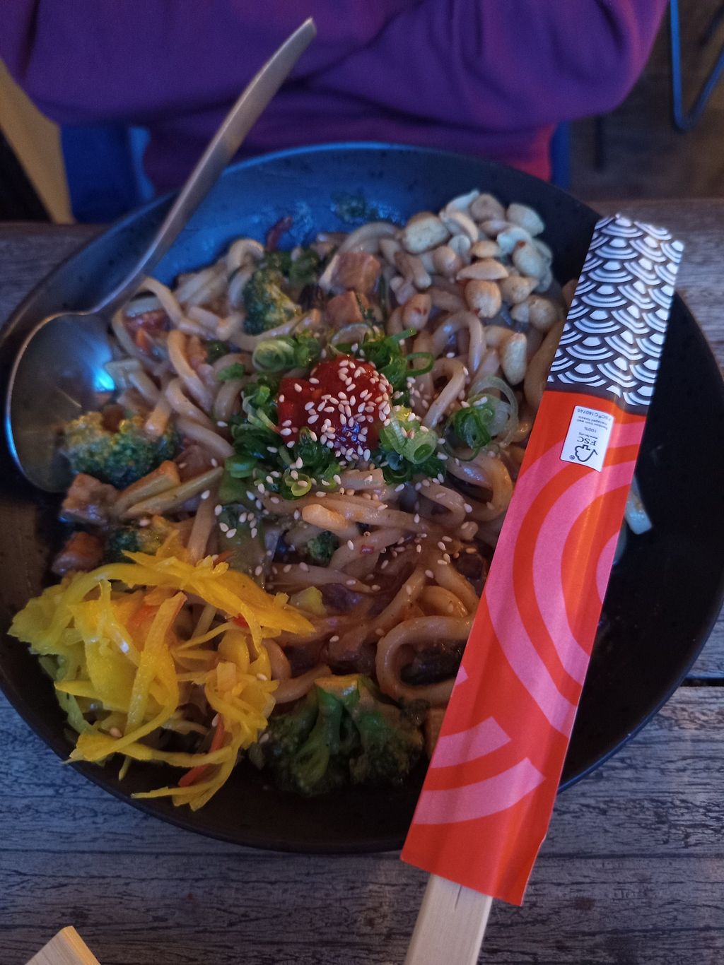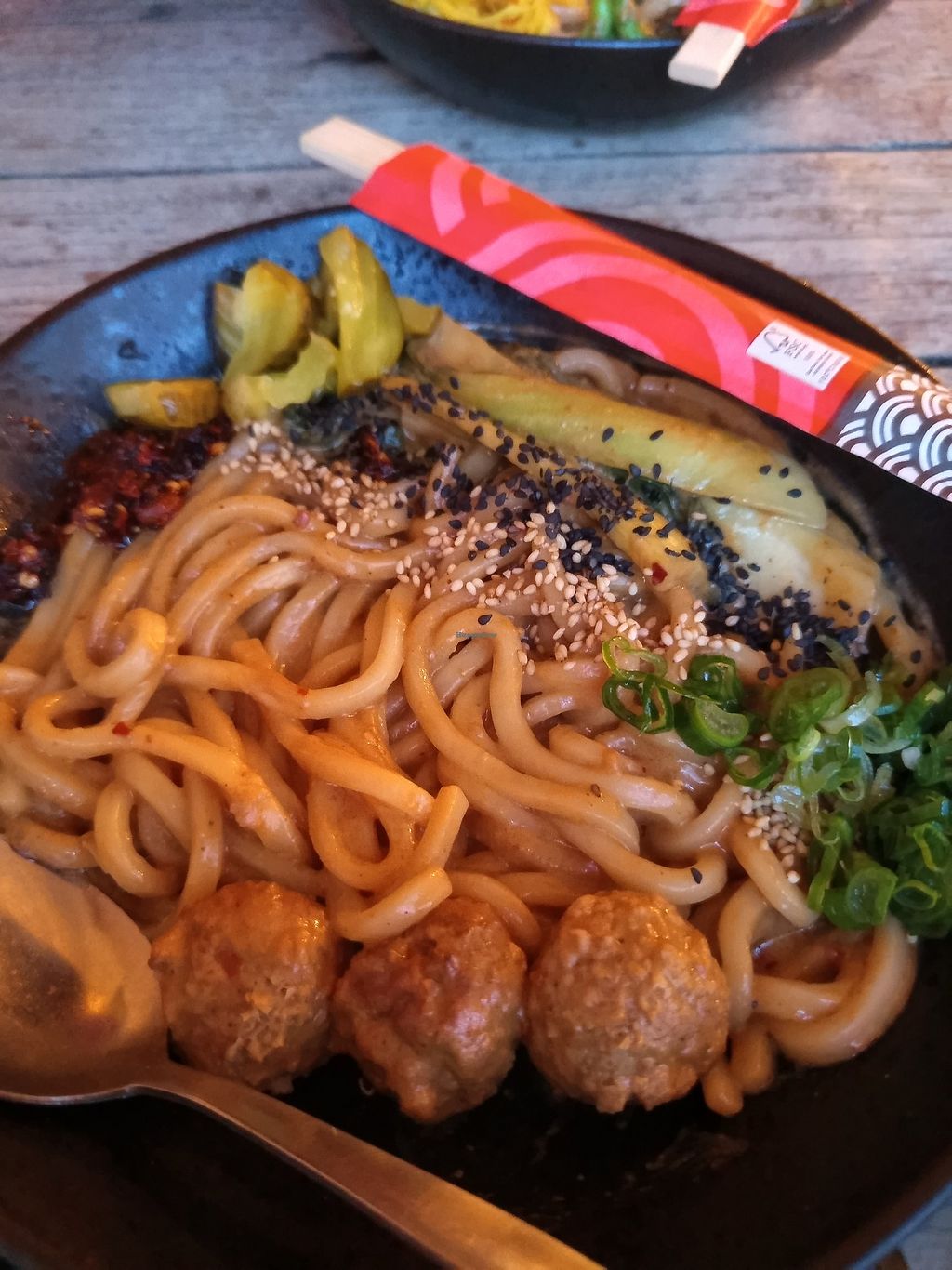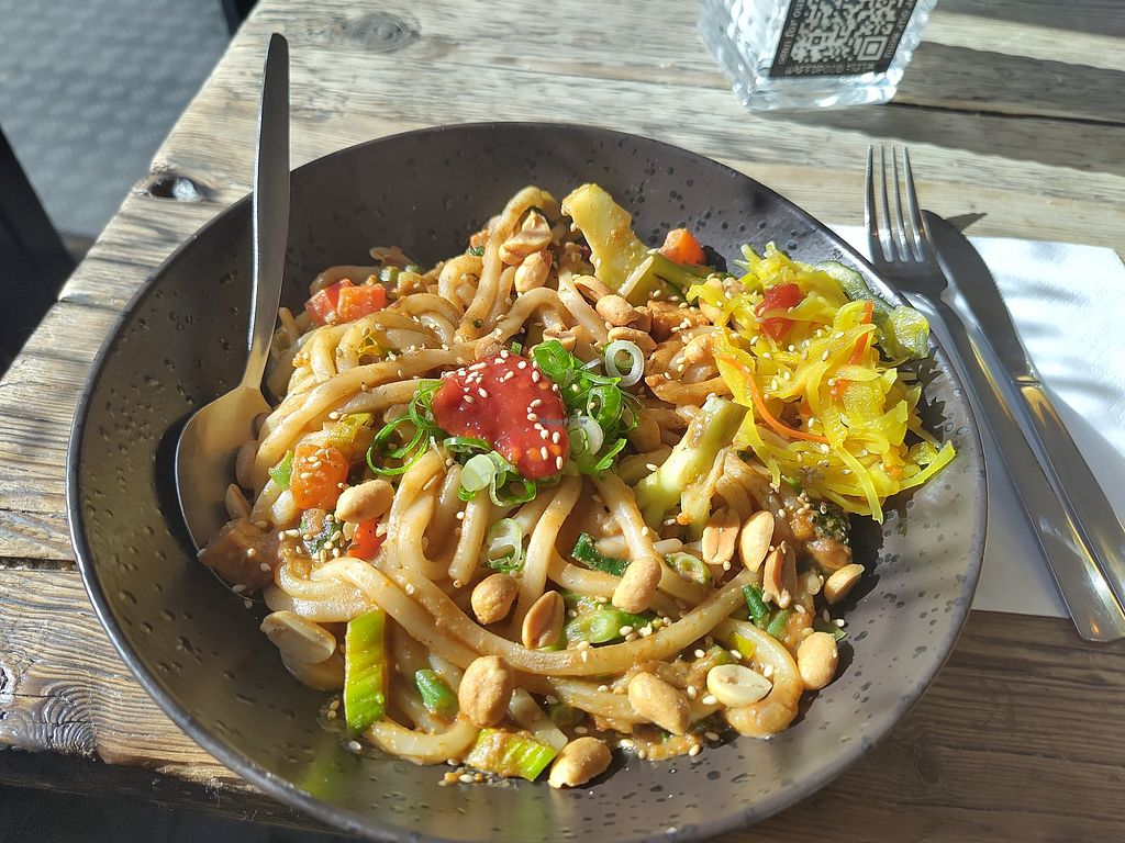 I had a warm udon bowl with a turmeric latte. Both quite delicious and with a fair size. The staff was also quite friendly:) I liked the fact that the menu is obtained by a QR code. So no paper involved! I will come again if I ever visit Amsterdam again!