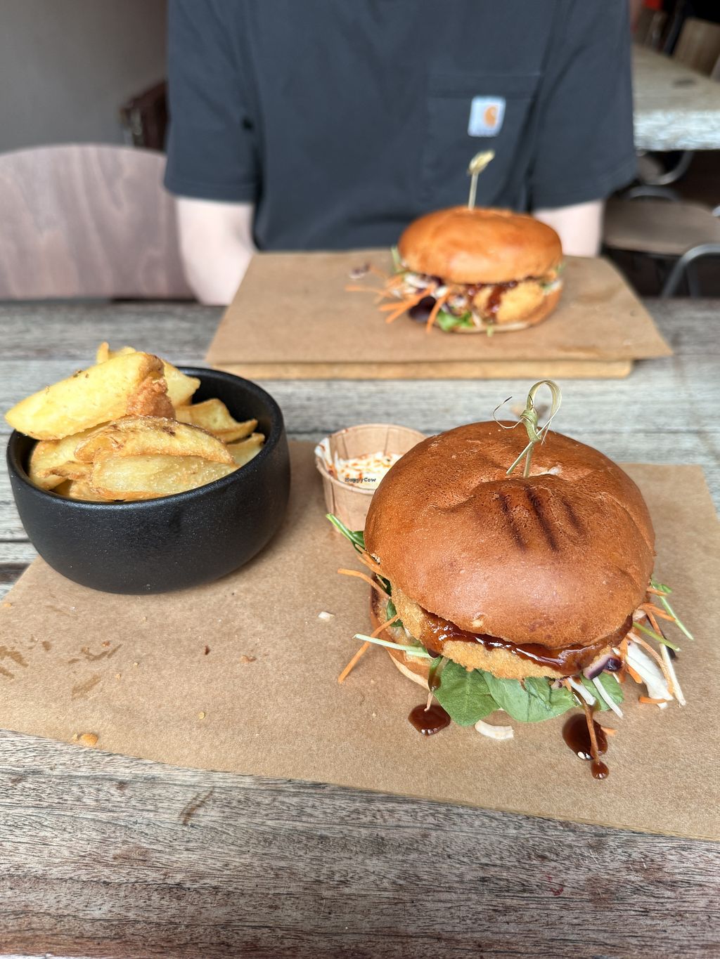 Delicious chicken burger and fries! The chicken patty was the thinnest I’ve ever had, so not the most filling meal but I really liked how light it was!