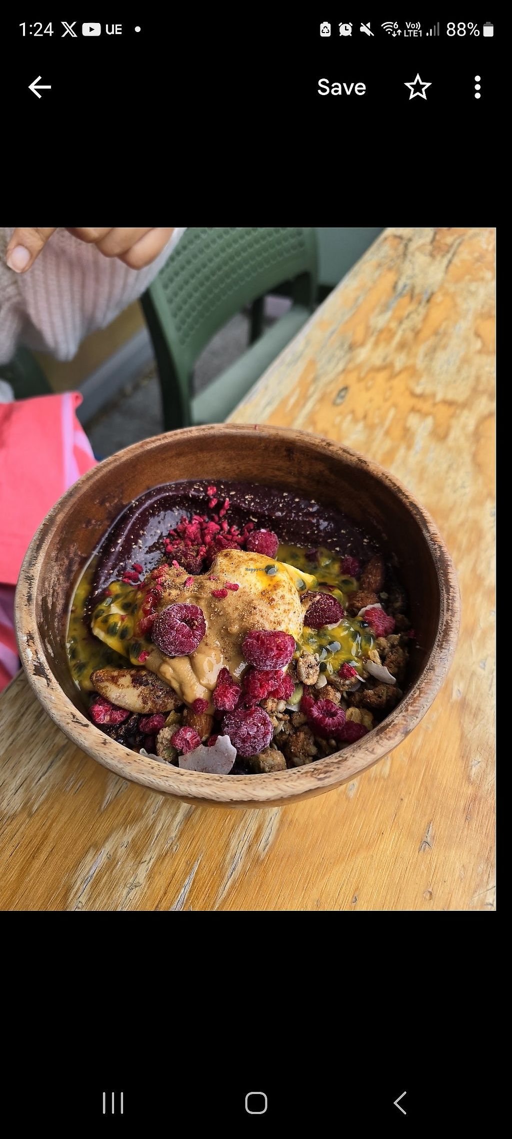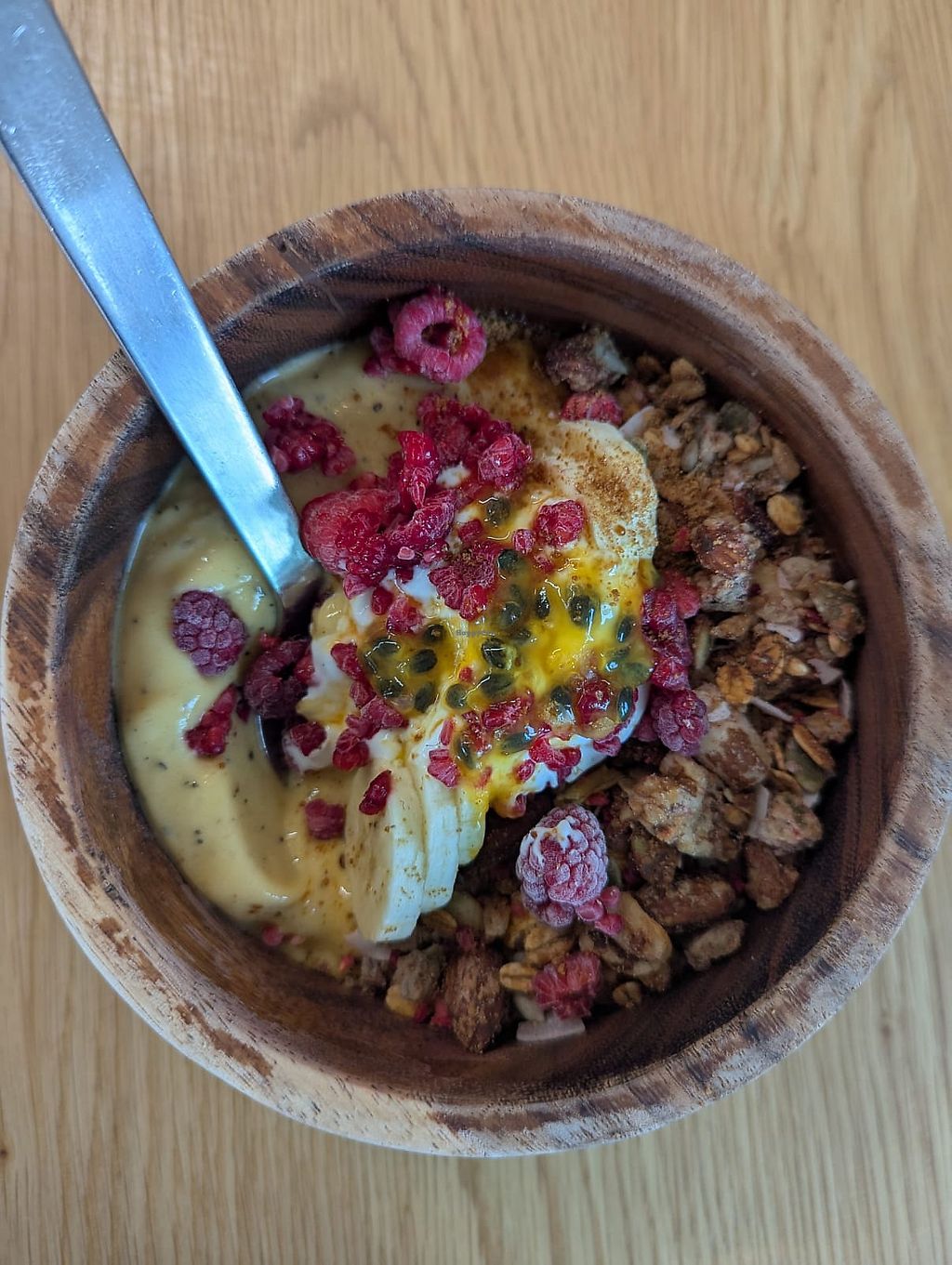 Wonderful vegan options. Smoothie bowls are divine ! Salted caramel smoothie particularly amazing
