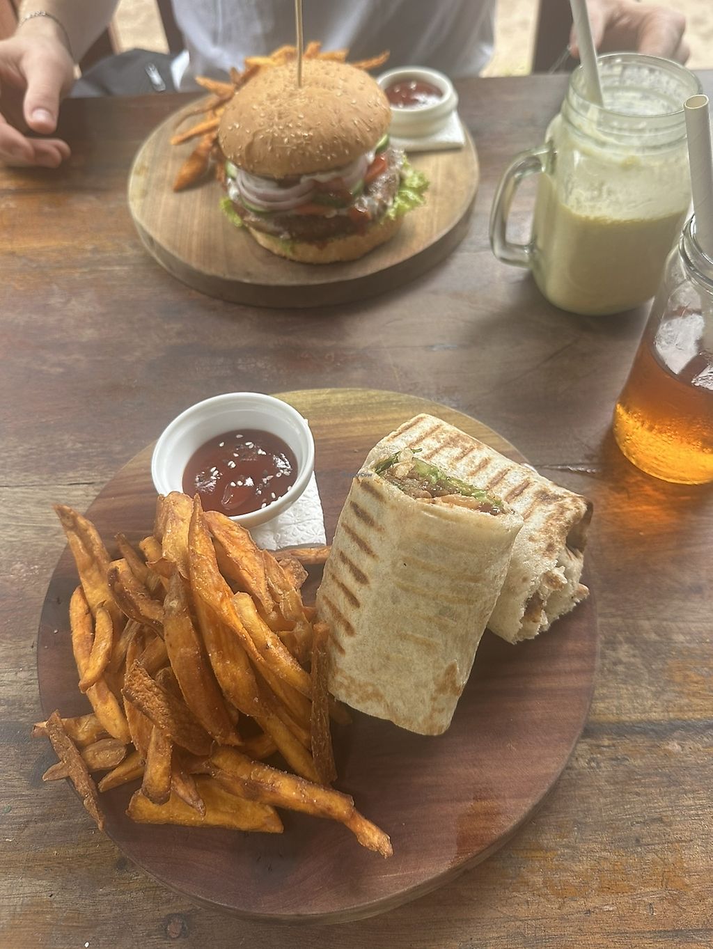We had mushroom and jackfruit wraps served with sweet potato fries.