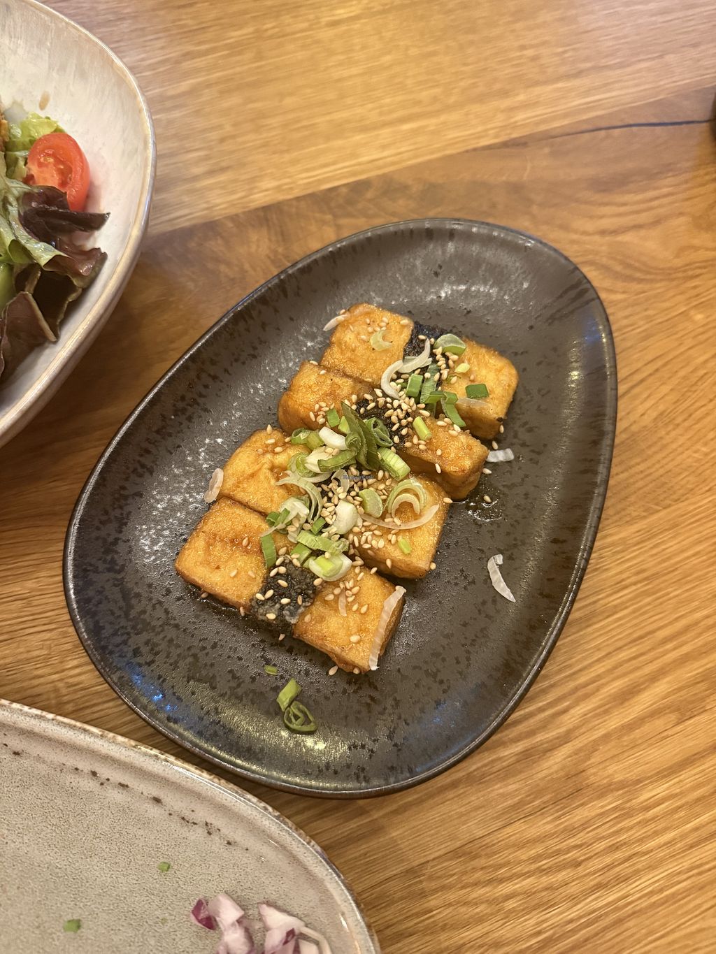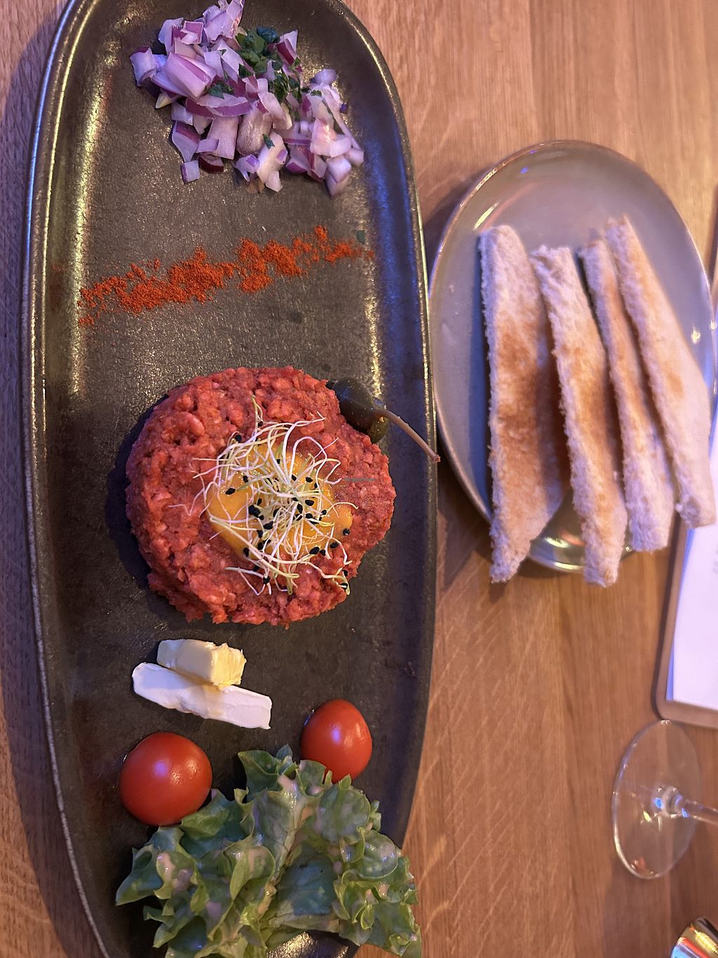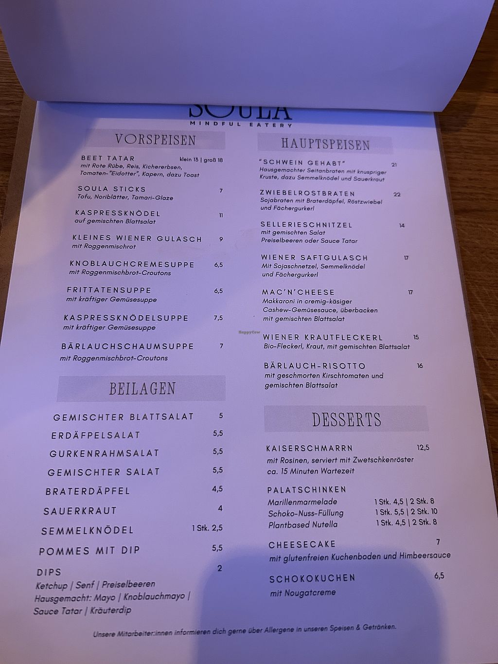 Der Schweinsbraten ist ein hausgemachter Seitanbraten und der Zwiebelrostbraten ein eingeweichtes Soja-Steak. Geschmacklich war beides gut, aber für das was es ist, ein bisschen zu teuer. Das Ambiente ist sehr schön und die alkoholfreien Spritzer/Cocktails und Desserts sind sehr zu empfehlen 😋