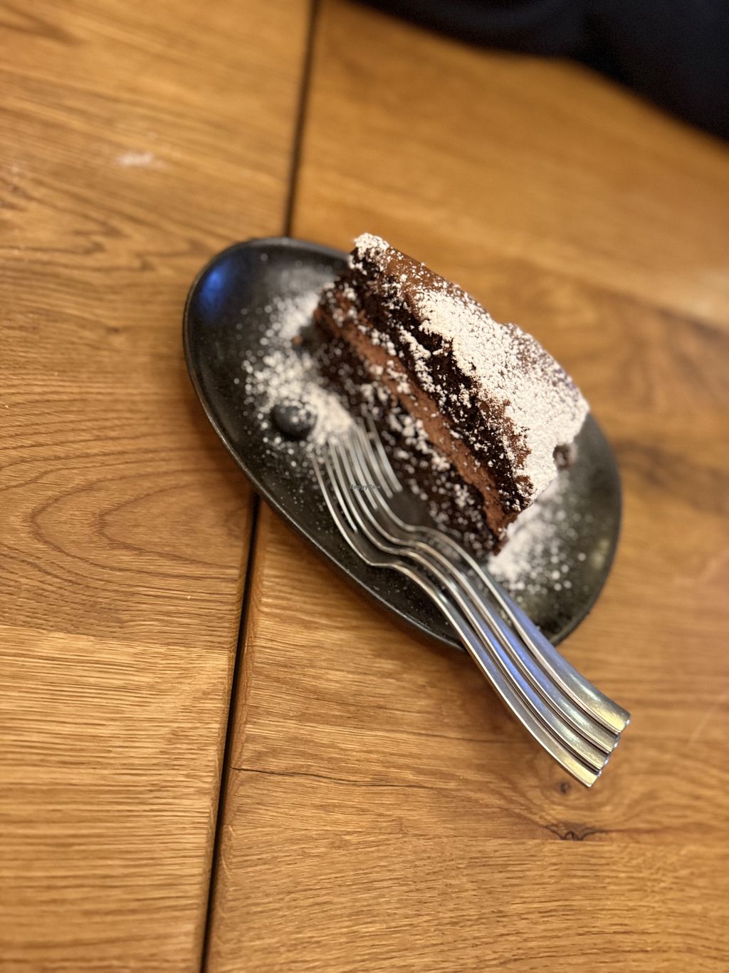 The dessert showed as 0€ on the bill, not sure if it's a menu discount or if there was another reason. Either way, the pancake took me right back to my childhood. Made without eggs yet so soft and squishy.