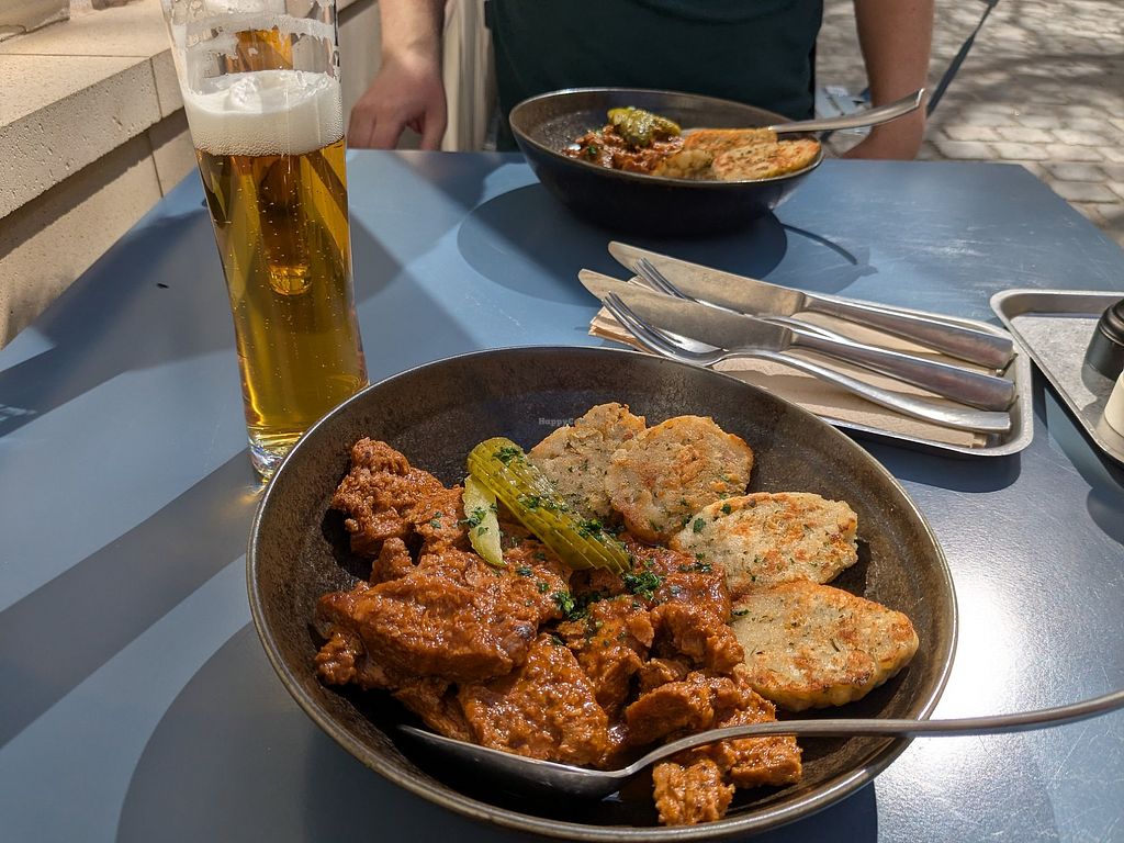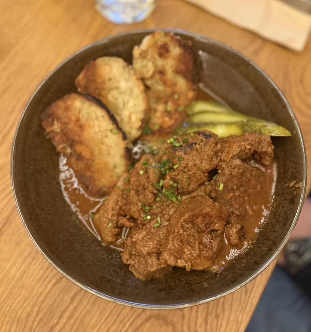 I love this place. There should definitely be more non-alcoholic restaurants. The food was amazing. I had gulash with dumpings. Probably the best dumplings I ever had. But I'd prefer more of them because there was too much seitan for this amount of dumplings.