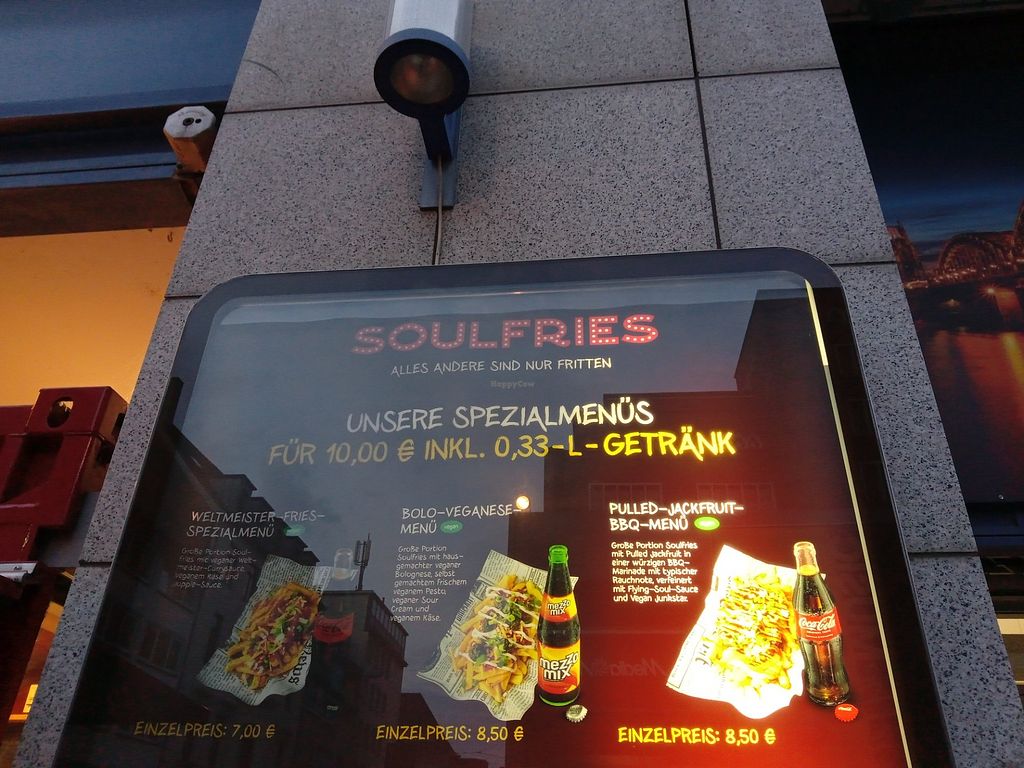 Serves meat, vegan options available. Take-away chip shop offering a few vegan options such as special fries, bolognese fries, and pulled BBQ fries. Located next to MediaMarkt. Open Mon 11:00-08:30, Tue-Sun 11:00-20:30. Closed Sun.