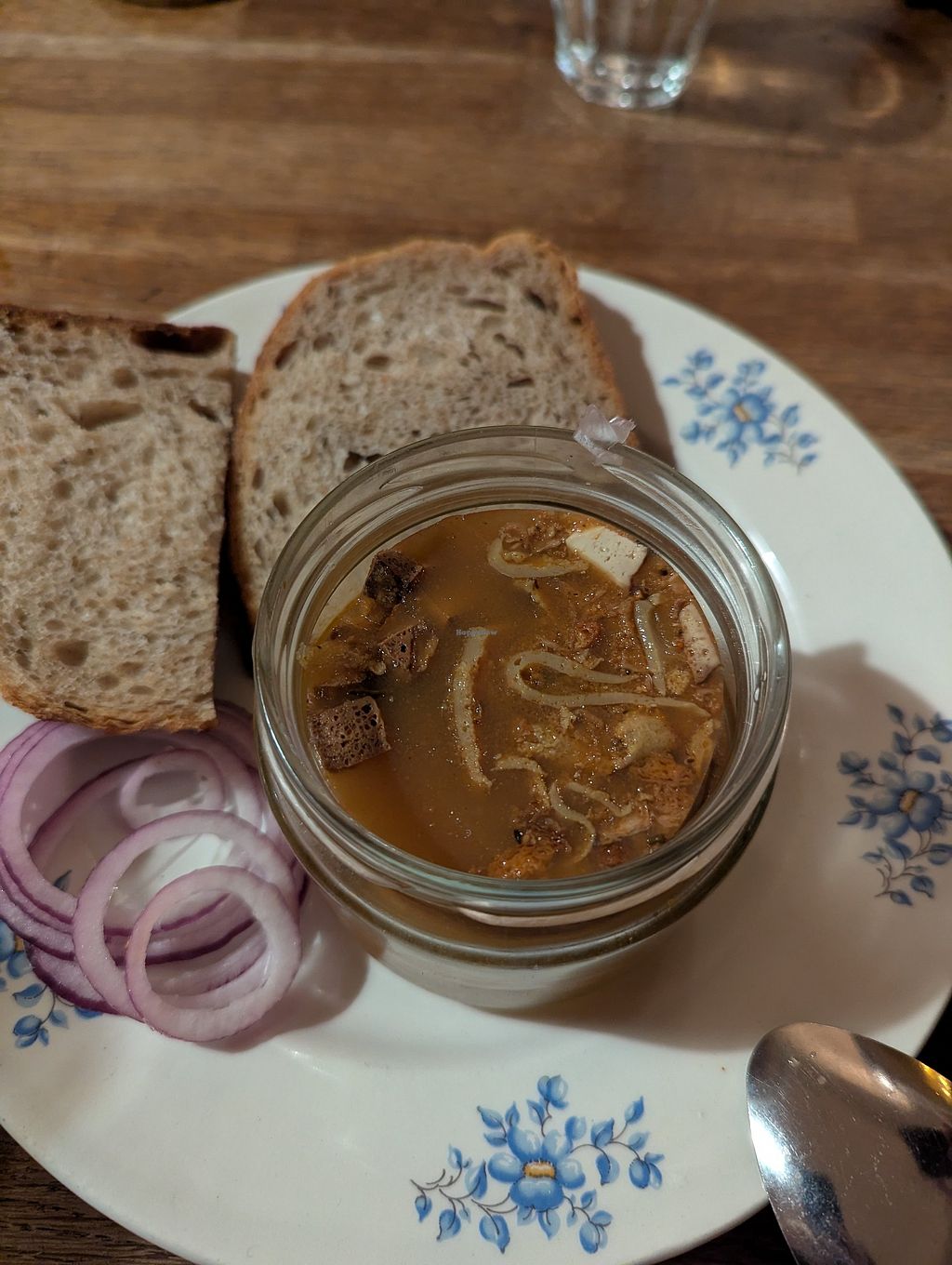 Delicious, hearty food, friendly service, and completely vegan. The potato dumplings with soy strips and cabbage were very tasty. The Buchteln (sweet buns) were a bit dry, and the vanilla pudding was more like coconut foam. What's really great is that you can spend more money, and in return, people who can't afford it get drinks or food.