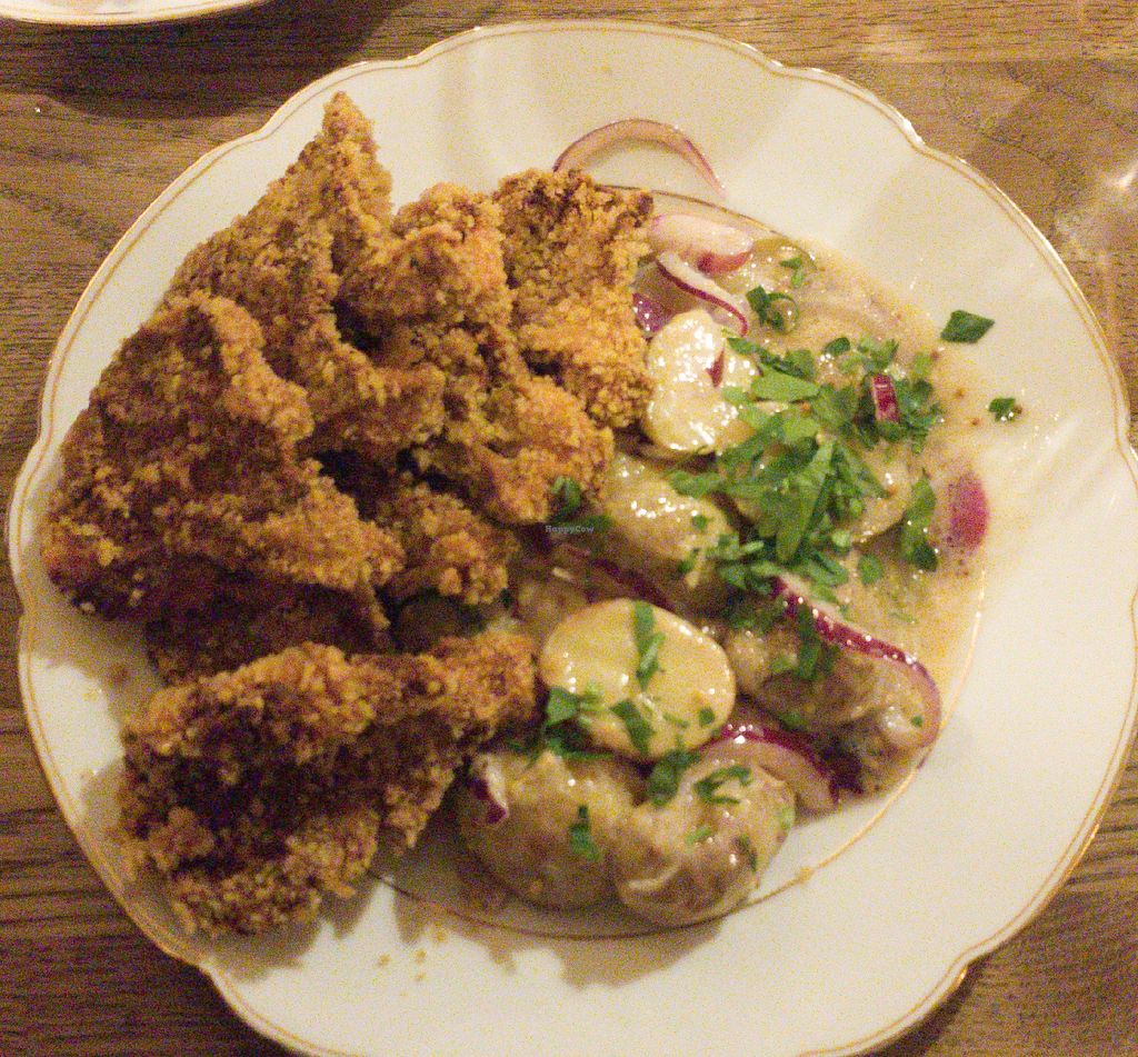 We got the schnitzel w/ potato salad, cheese board and the red cabbage dumpling. It was good and hearty, but found it one note.