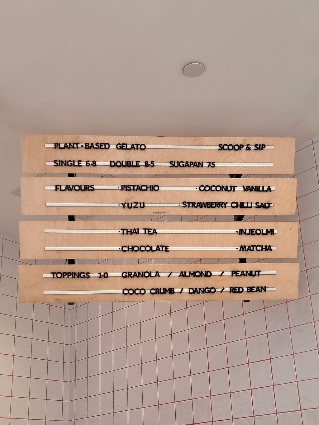 Edit: No longer fully vegan😒E.g. their yuzu rice milk gelato contains honey, and serve dairy whipped cream toppings :(