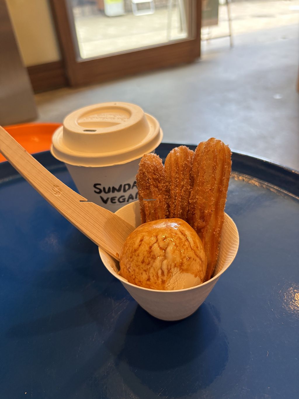 Hot rice flour churros vegan ice cream affogato = perfection!