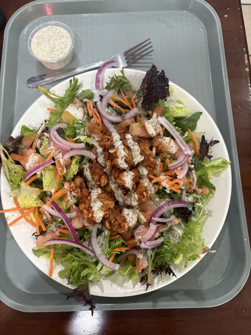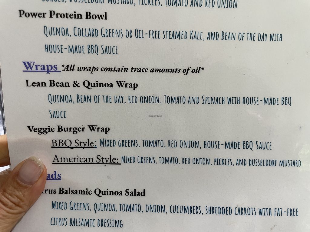First time here, just passing through and we loved this place! So many great things to choose from! Staff was very friendly and gave us samples! I had the Loaded Potato Bowl and Broccoli Salad, both amazing! My husband had the Hot Chik’n Bowl and Pad Thai Salad, both really good! Would definitely eat here again! (They even helped a stray cat by “adopting” it, caring for it and naming it Lentil 😊)