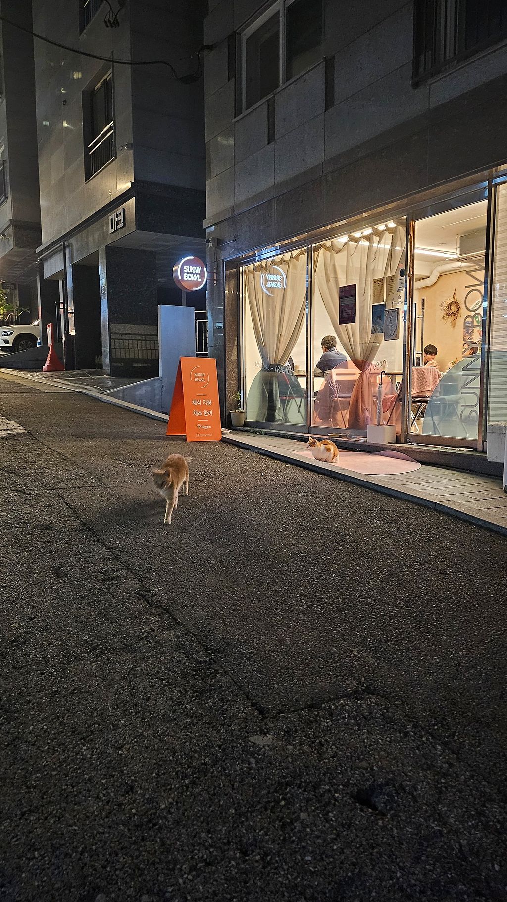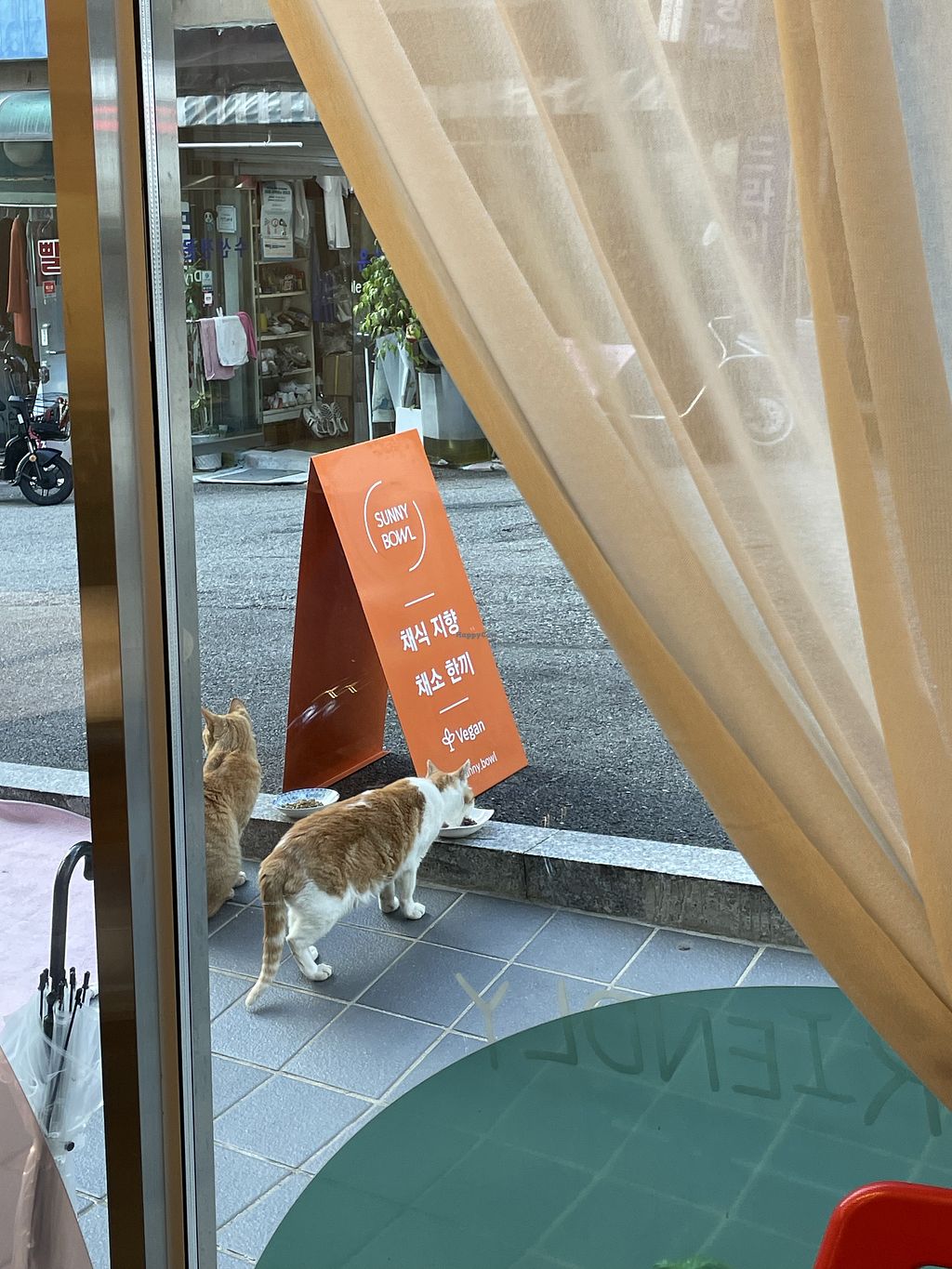 Cute street with cute, well-loved street cats around and about, kind vegan owner, open kitchen, absolutely wonderful food for very ressonable prices, and the bathroom was clean. It's a must-try, which will probably become a regular stop.