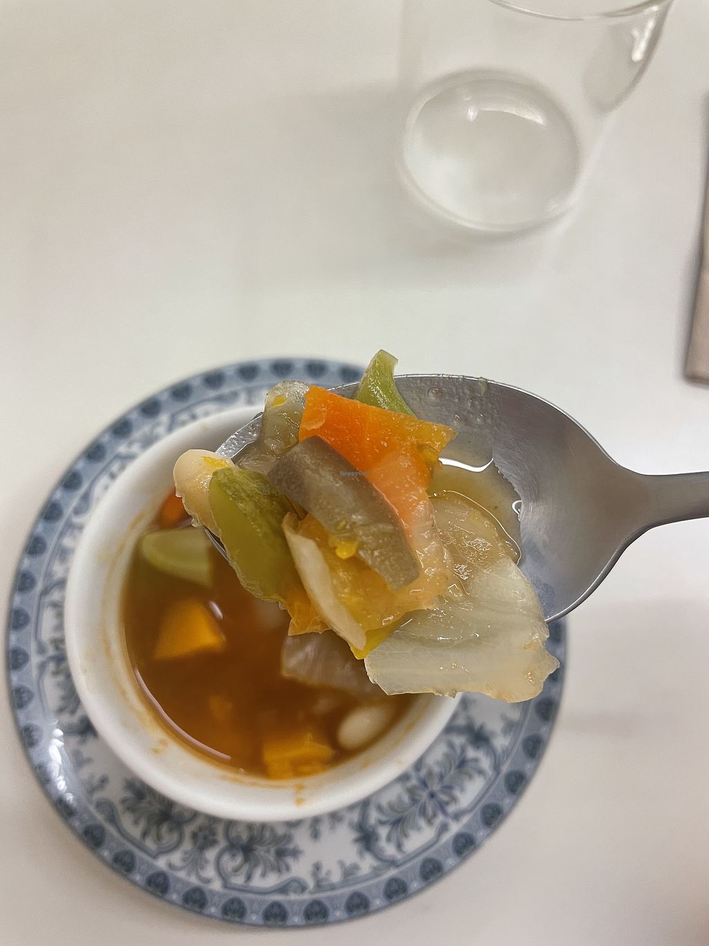 Lovely atmosphere and the food was so yum! Small portion of green slad was served free as an appetiser. The salad dressing was misteriously worderful. The main dish, hot noodle soup was a bit spicy, but yum-spicy. - Not too salty too. Full of vegetable and vege-protein, leaving not a lot of room for noodles. I didn't mind at all. I prefer to have more vege than noodles. Still the noodle is made of whole-meal! Walked out as a healthy person. 😄 I recommend to anyone, not just vegos.