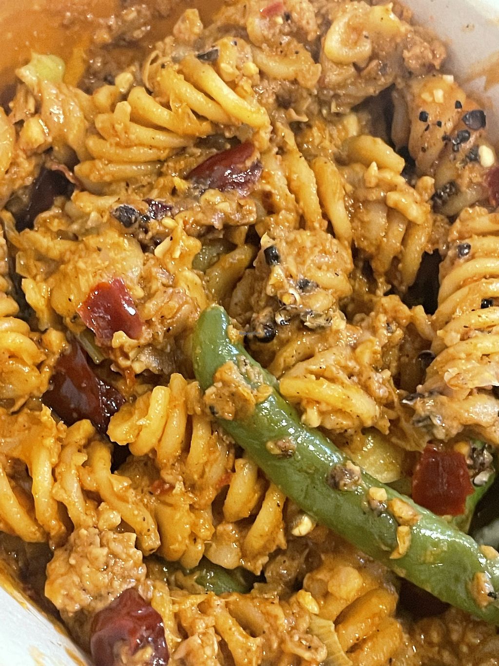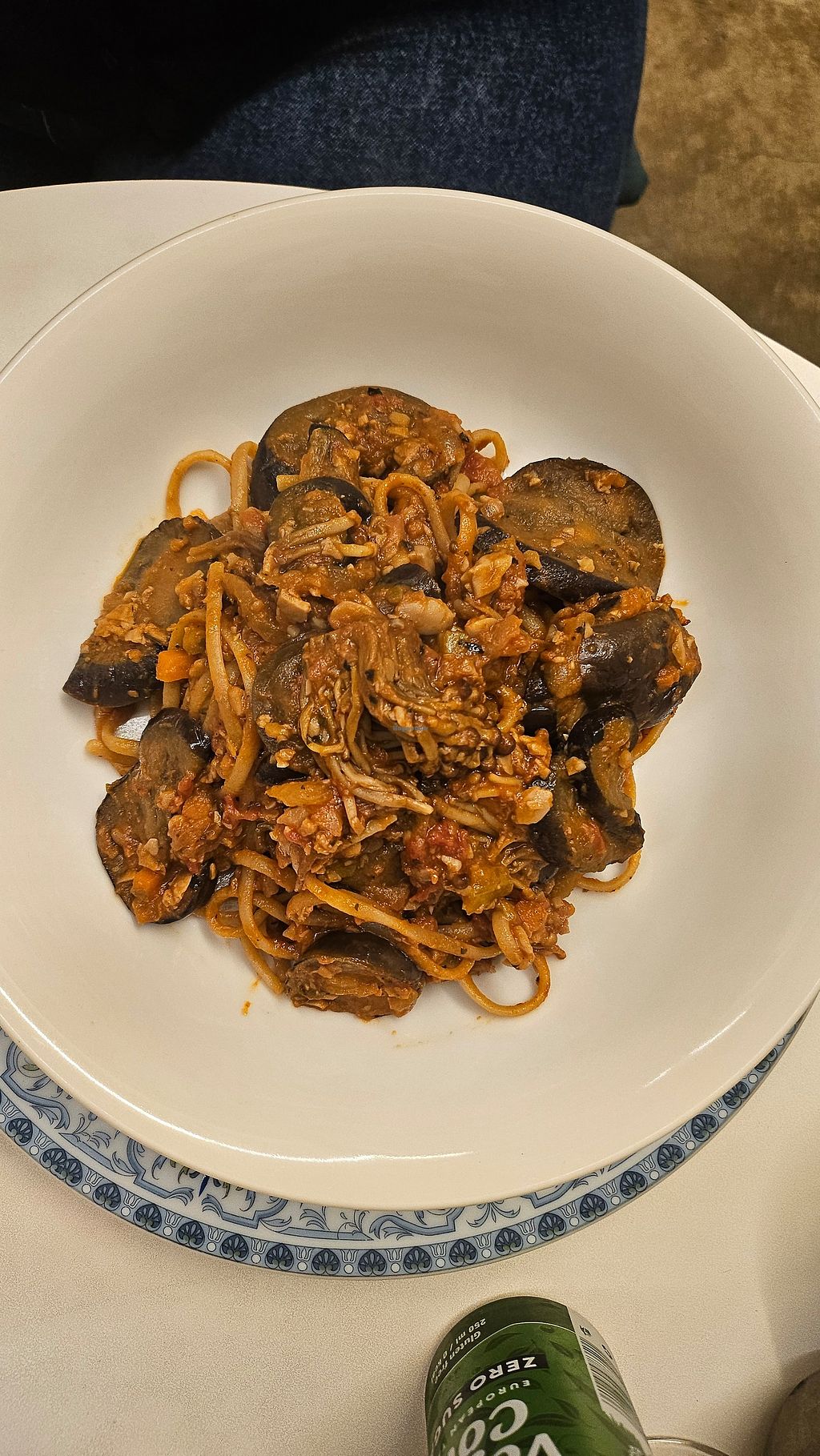 I got the mayo pasta? Something like that I don’t remember but it was amazing!! The owner was a bit concerned that I wouldn’t handle the spice well, but I think it was perfect! A must visit. They also have vegan cola? Which tasted pretty much just like regular cola. But overall, a great experience!
