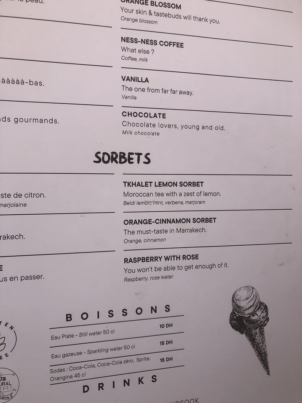 Read moreI had the orange cinnamon sorbet and Tkhalet sorbet and really enjoyed both. The orange one was a bit too sweet for my taste, but still nice. Overall, the best ice cream and sorbet we have tried in Morocco. Worth a stop.