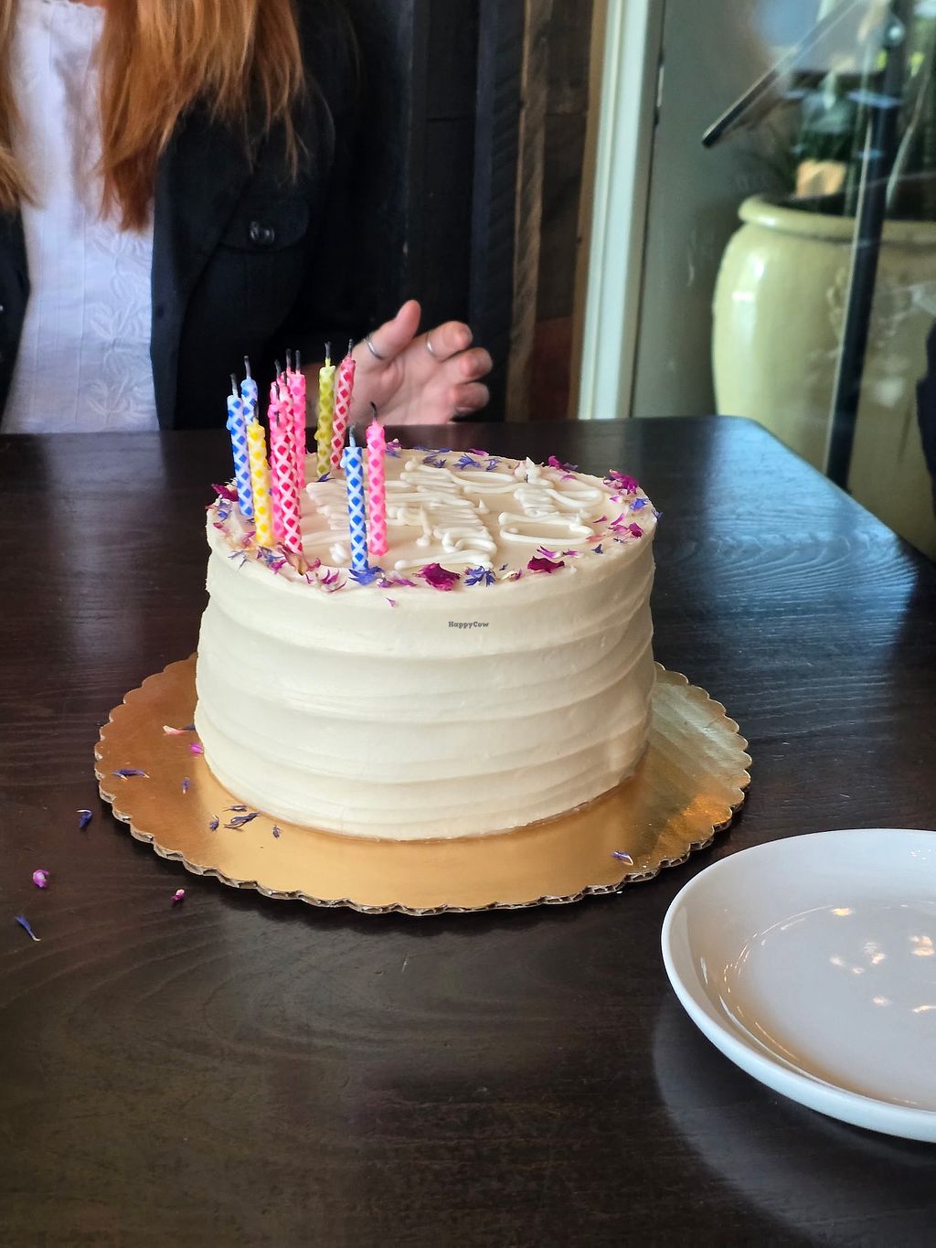 Had a red velvet cake ordered for my birthday about a week ago. It was pretty decent and richer than the vegetarian cakes I've had in the past. The frosting was moderately sweet, and my stomach felt the coconut oil. I made the error of ignoring the "made for (this amount) of people" message on their website and got an 8-inch cake. With the reasoning of "oh it's only 8 inches in diameter and probably only like 3 inches tall. That'll be fine for four people." Therapist upped session rates since this blunder. It's meant for 12-16 people and it was HUGE. I guess the bonus of having dessert covered for a good while was nice. Someone that I shared the cake with upon having the first bite said it was better than the non-vegan cakes they've had.